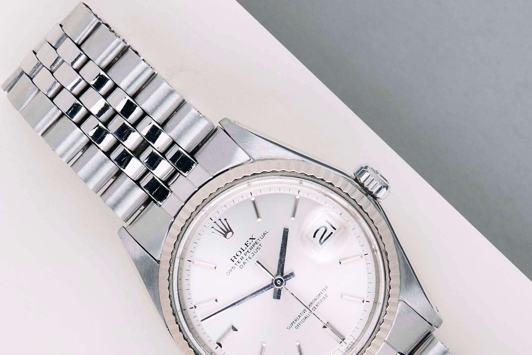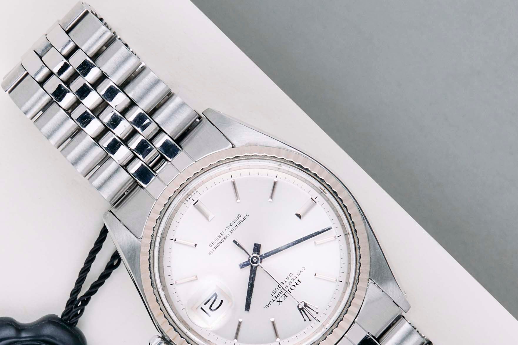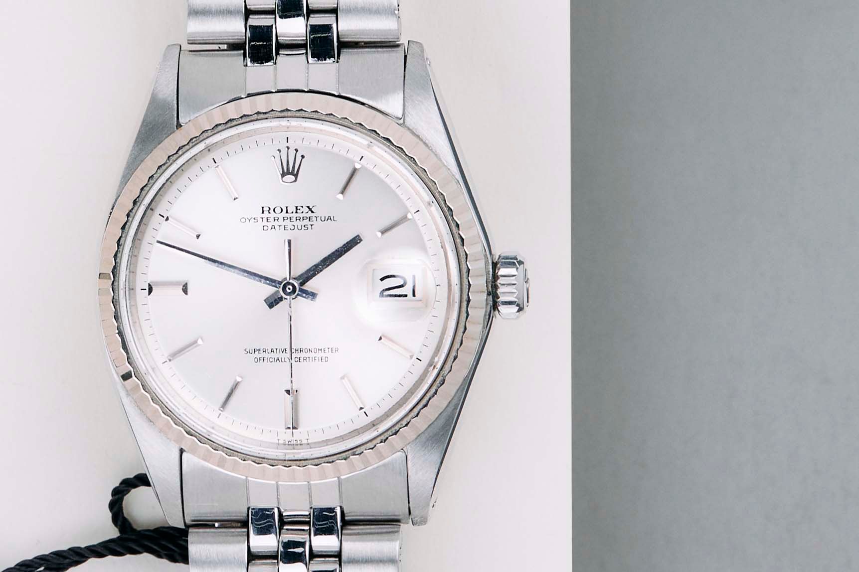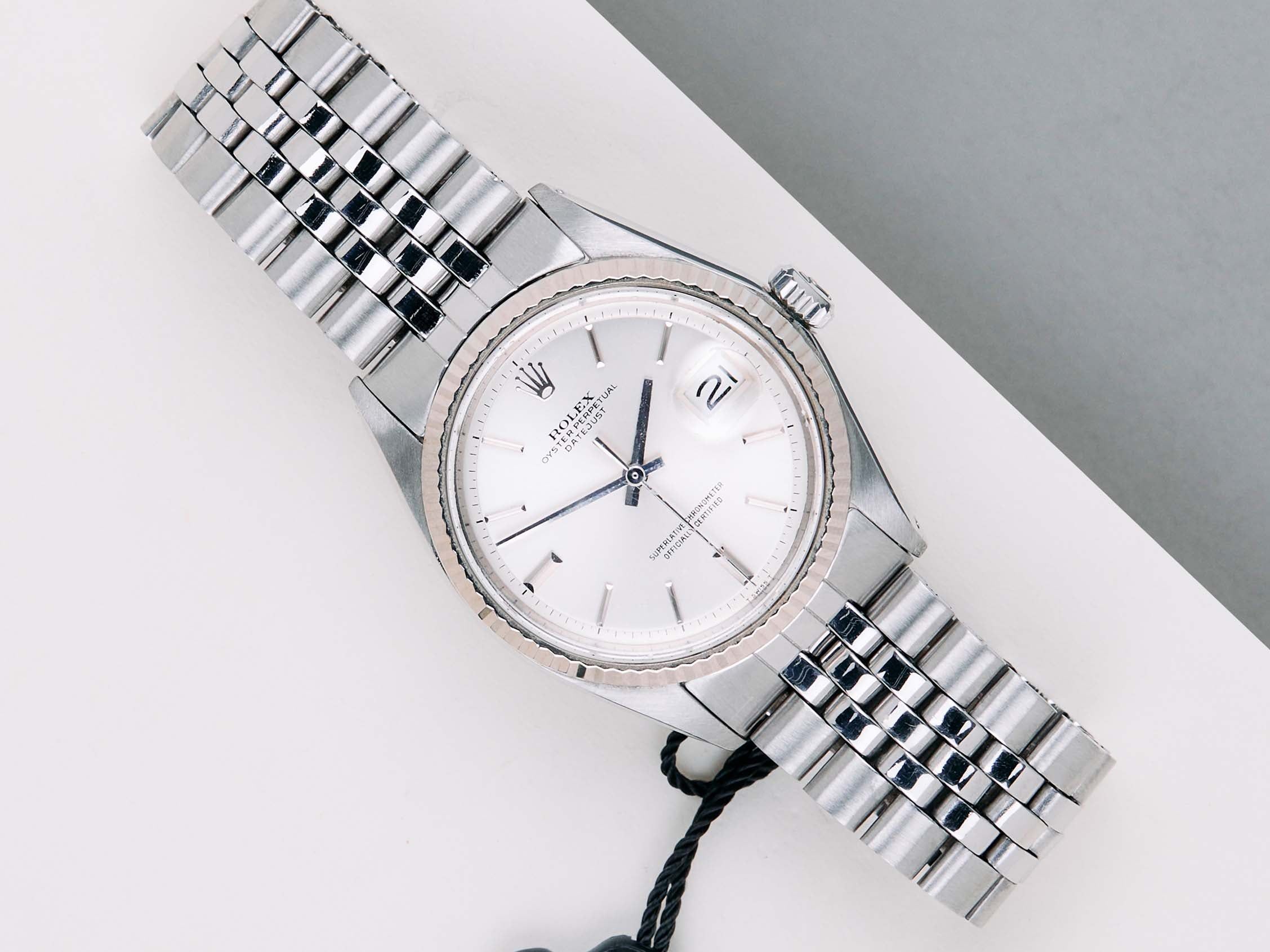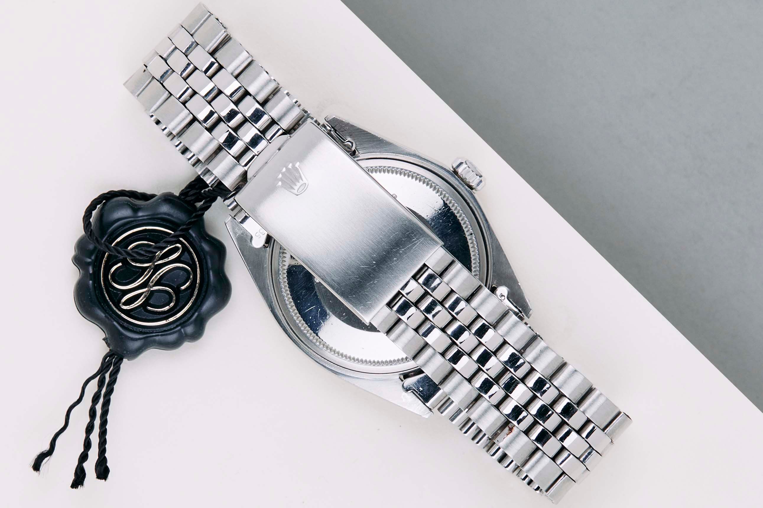 Box Only Set | Original Rolex 'No Lume' Dial | 2.6XX.XXX Serial | Original Folded Bracelet | Bracelet Code 6251H | Clasp Code 4.71 | End Links 55 | Open 6 & 9 Date Wheel Rolex introduced the original Datejust in 1945 to celebrate the company's 40th anniversary. Due to the various case sizes and materials, the Datejust has been ingrained in Rolex's history and remains incredibly popular for 75 years. This Datejust is made of a combination of 18k White Gold and stainless steel and is fitted with a Jubilee bracelet. This pristine 1601 is equipped with an original 'No Lume' Pie-Pan Dial. In addition, the Datejust is equipped with an Open 6 & 9 Date Wheel. This 1601 reference features a Silver dial with a slight sunburst effect and unusual 'No Lume' Dial. These 'No Lume' dials were specifically produced for the Japanese Market, since Japan didn't allow the use of Tritium. The indexes and hands are made of the White Gold without the use of Tritium, given it a more clean look. Consequently, a 'No Lume' dial is extremely desirable for watch collectors. The production year of this Datejust is 1971 and comes with its original Rolex Box. Furthermore, the watch has been serviced by our watchmaker, and therefore it comes with One Year of Steiner Warranty.