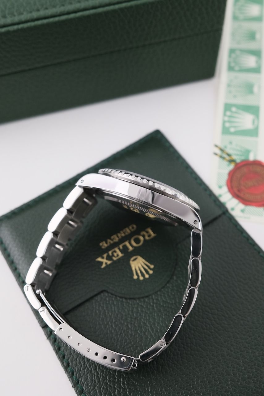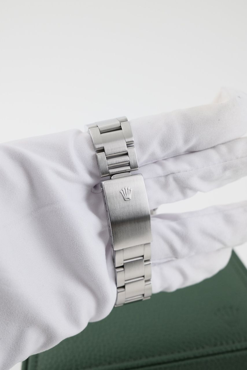 - Lichte gebruikssporen zoals haarlijntjes of kleine oppervlakkige krasjes. Kast, bezel en band behouden hun scherpe randen en oorspronkelijke vorm. Mogelijk professioneel gepolijst zonder de originele contouren aan te tasten. Mechanisch volledig functioneel.