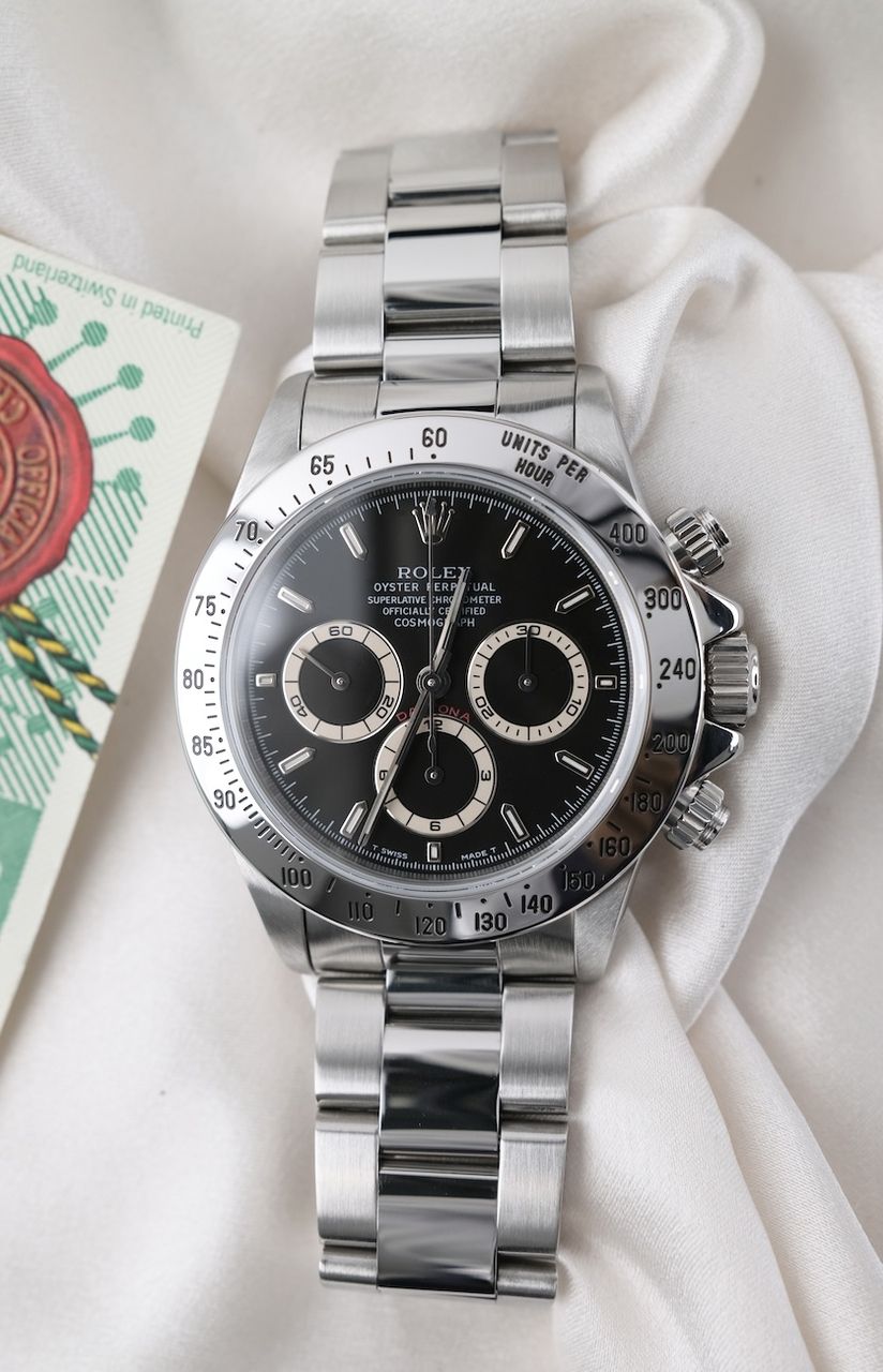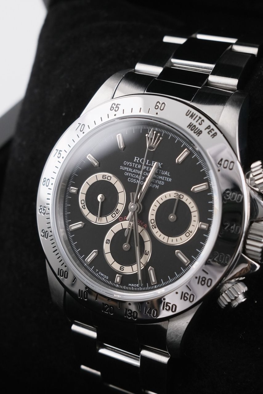 **Watch Description**Ready for your new dream watch? Perhaps this beautiful Rolex Daytona made of Steel will soon be on your wrist. Whether vintage or modern - with over 200 watches in stock, we always have your new luxury watch available for you immediately - whether you are a first-time buyer or your watch collection needs a new addition.
