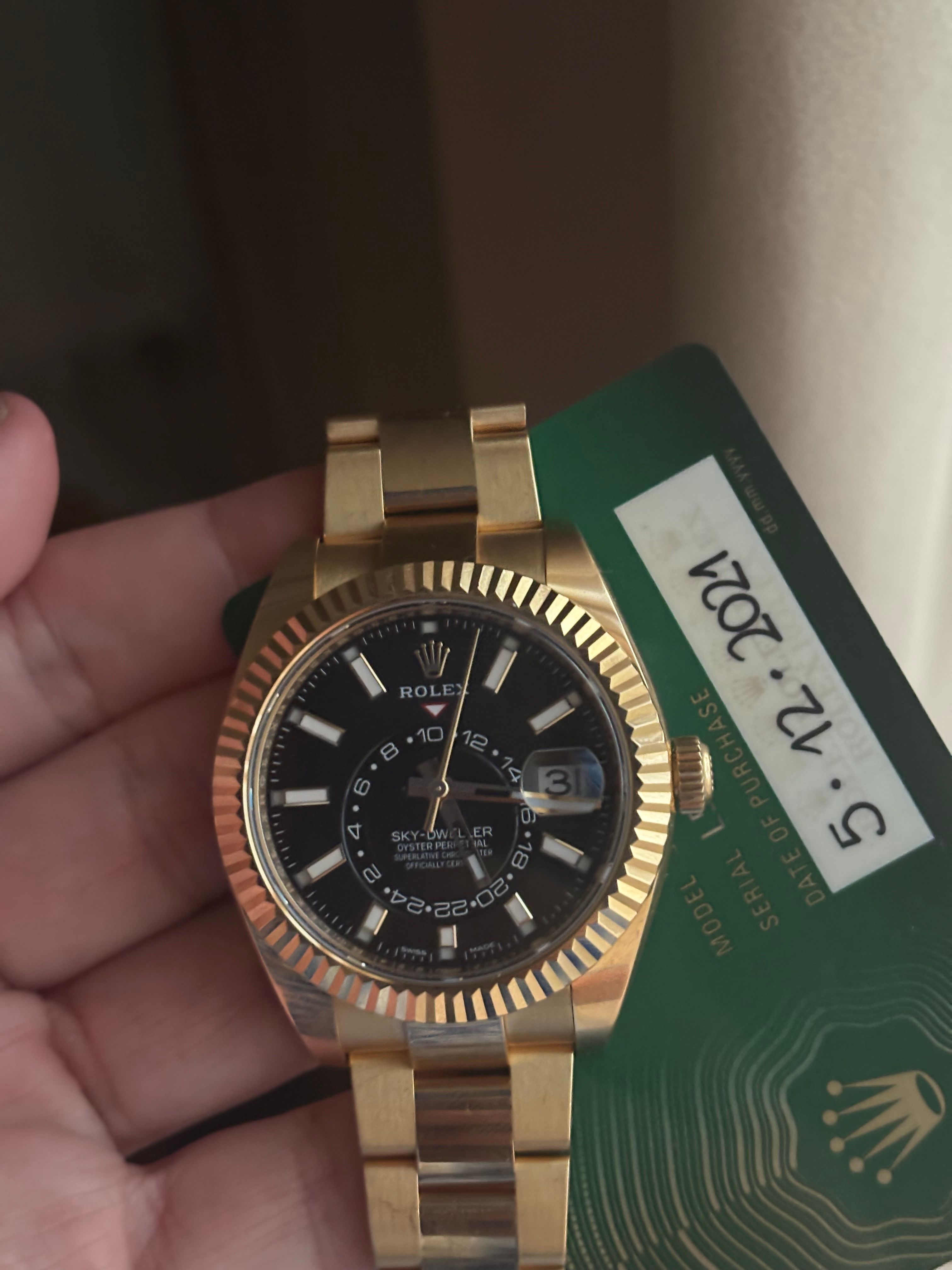 Rolex Skydweller yellowgold with Black Dial 2021-12Missing 1 link 🔗