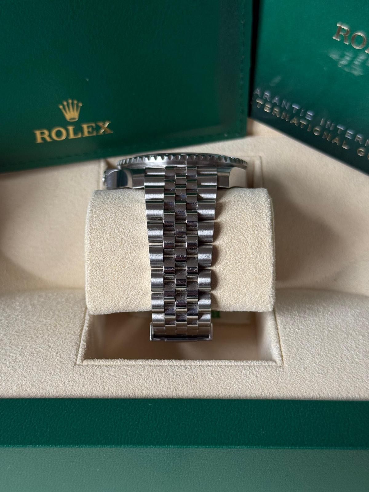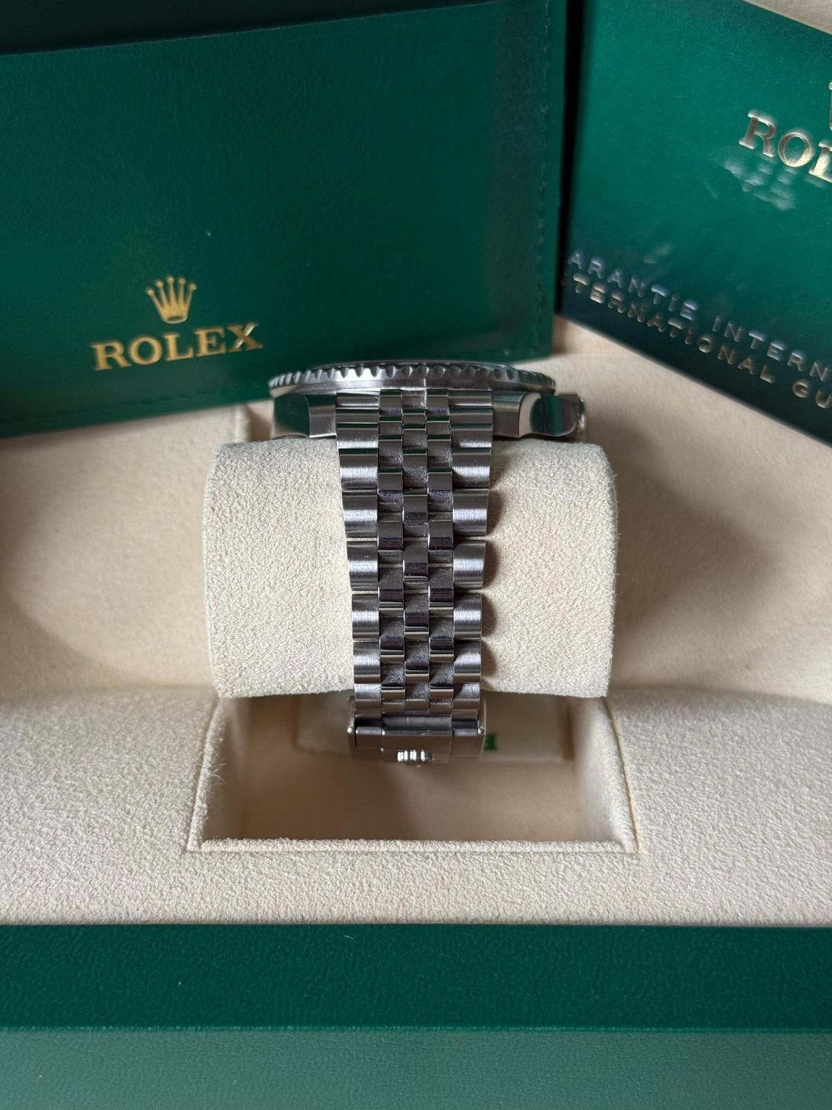 - Lichte gebruikssporen zoals haarlijntjes of kleine oppervlakkige krasjes. Kast, bezel en band behouden hun scherpe randen en oorspronkelijke vorm. Mogelijk professioneel gepolijst zonder de originele contouren aan te tasten. Mechanisch volledig functioneel.
