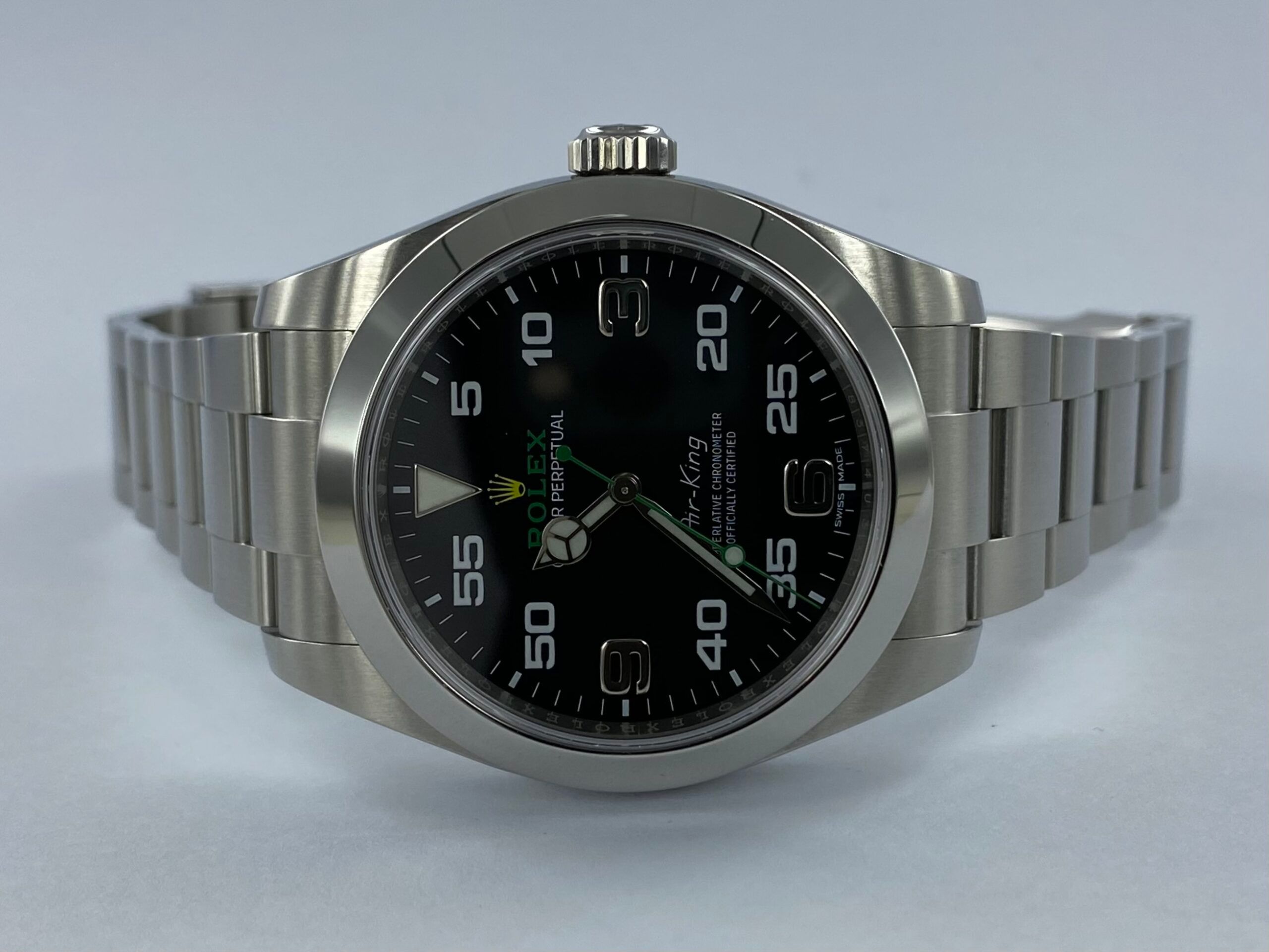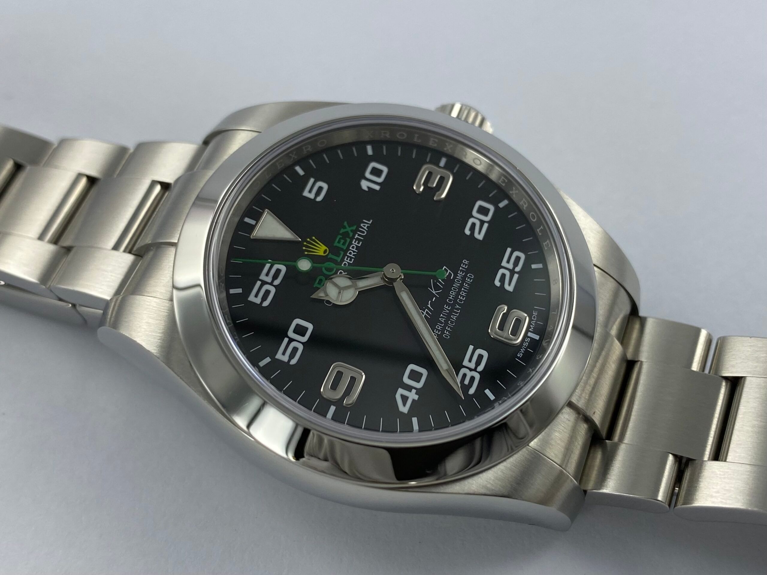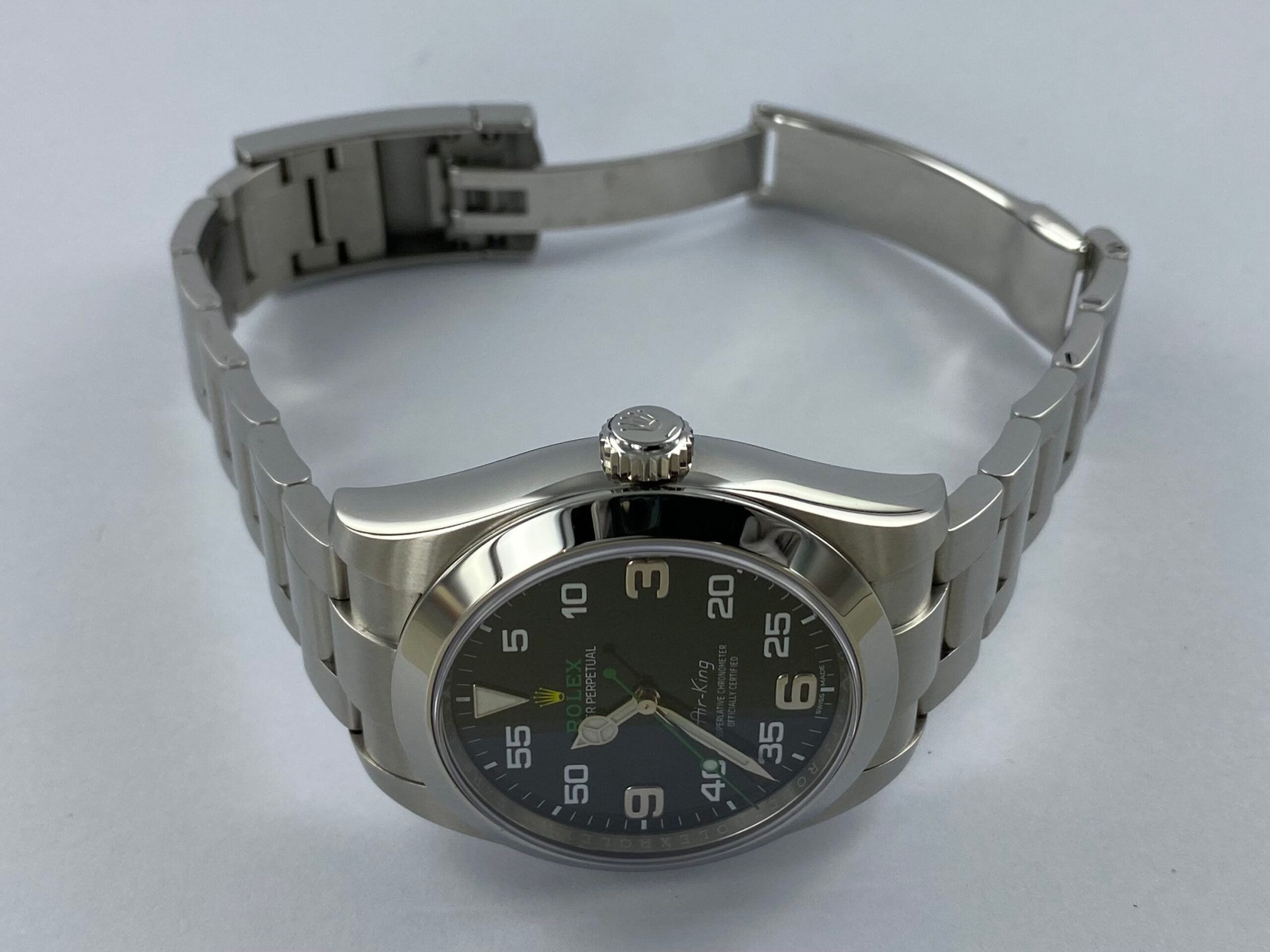 - Lichte gebruikssporen zoals haarlijntjes of kleine oppervlakkige krasjes. Kast, bezel en band behouden hun scherpe randen en oorspronkelijke vorm. Mogelijk professioneel gepolijst zonder de originele contouren aan te tasten. Mechanisch volledig functioneel.