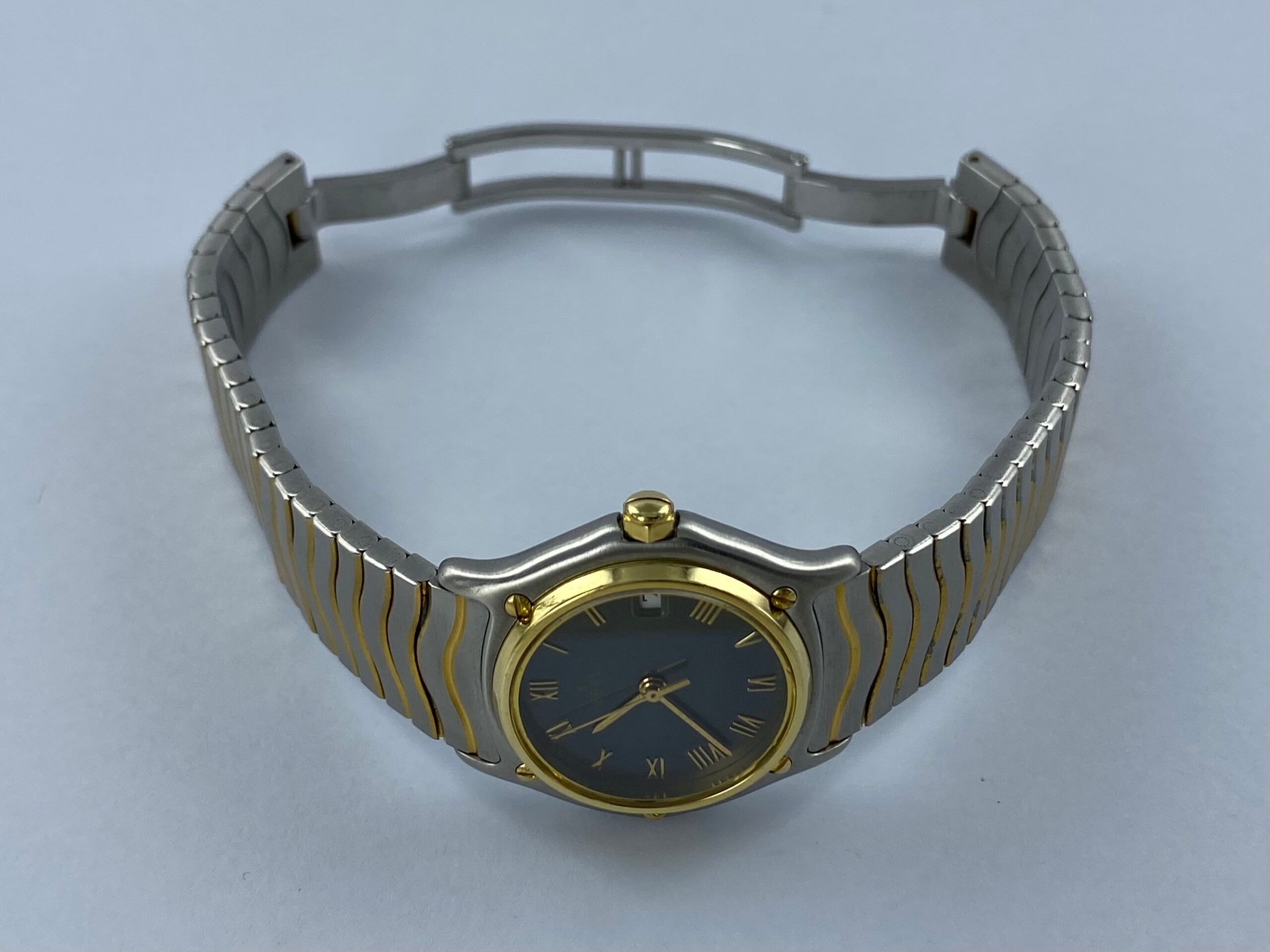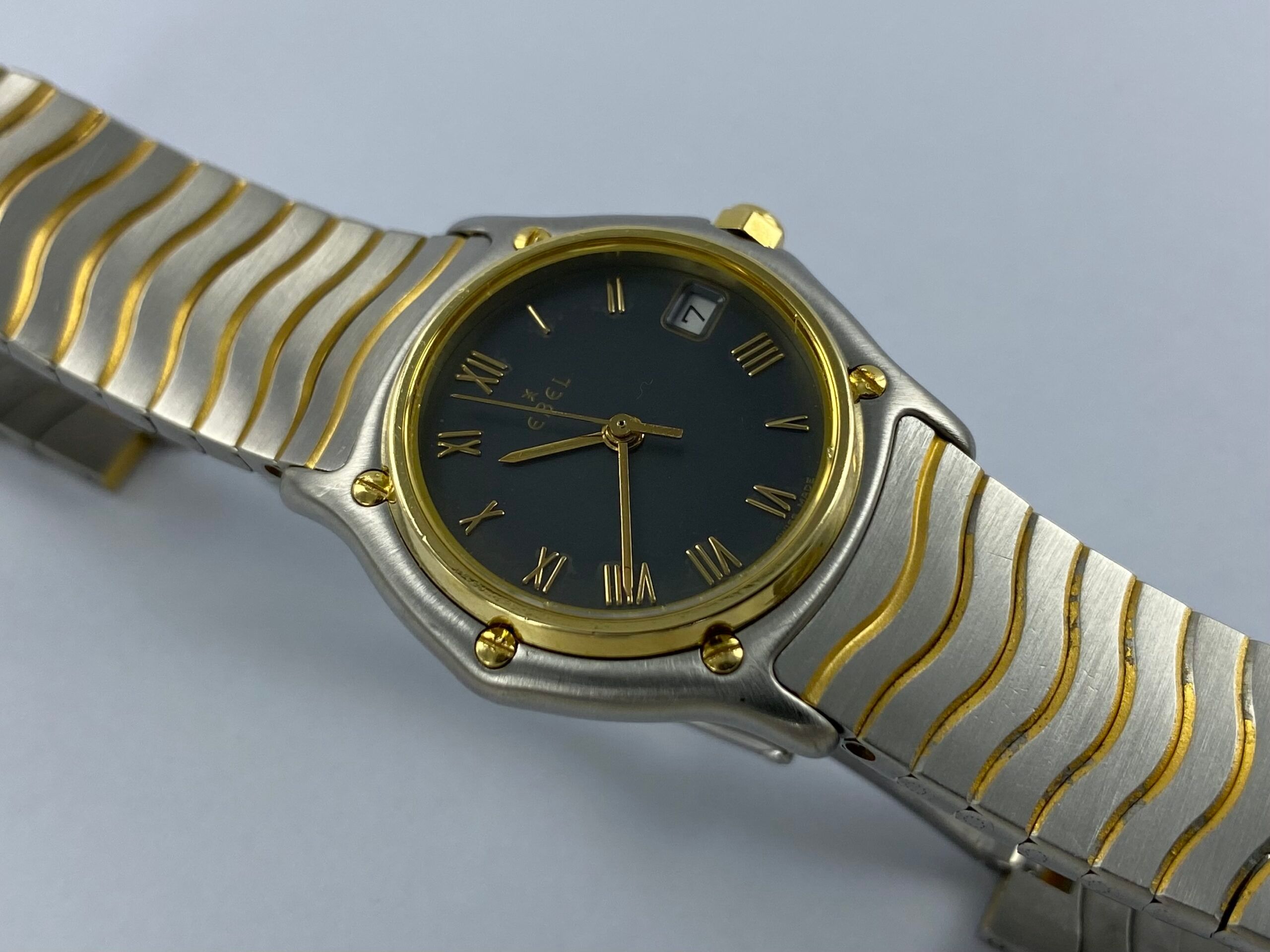 - Lichte gebruikssporen zoals haarlijntjes of kleine oppervlakkige krasjes. Kast, bezel en band behouden hun scherpe randen en oorspronkelijke vorm. Mogelijk professioneel gepolijst zonder de originele contouren aan te tasten. Mechanisch volledig functioneel.