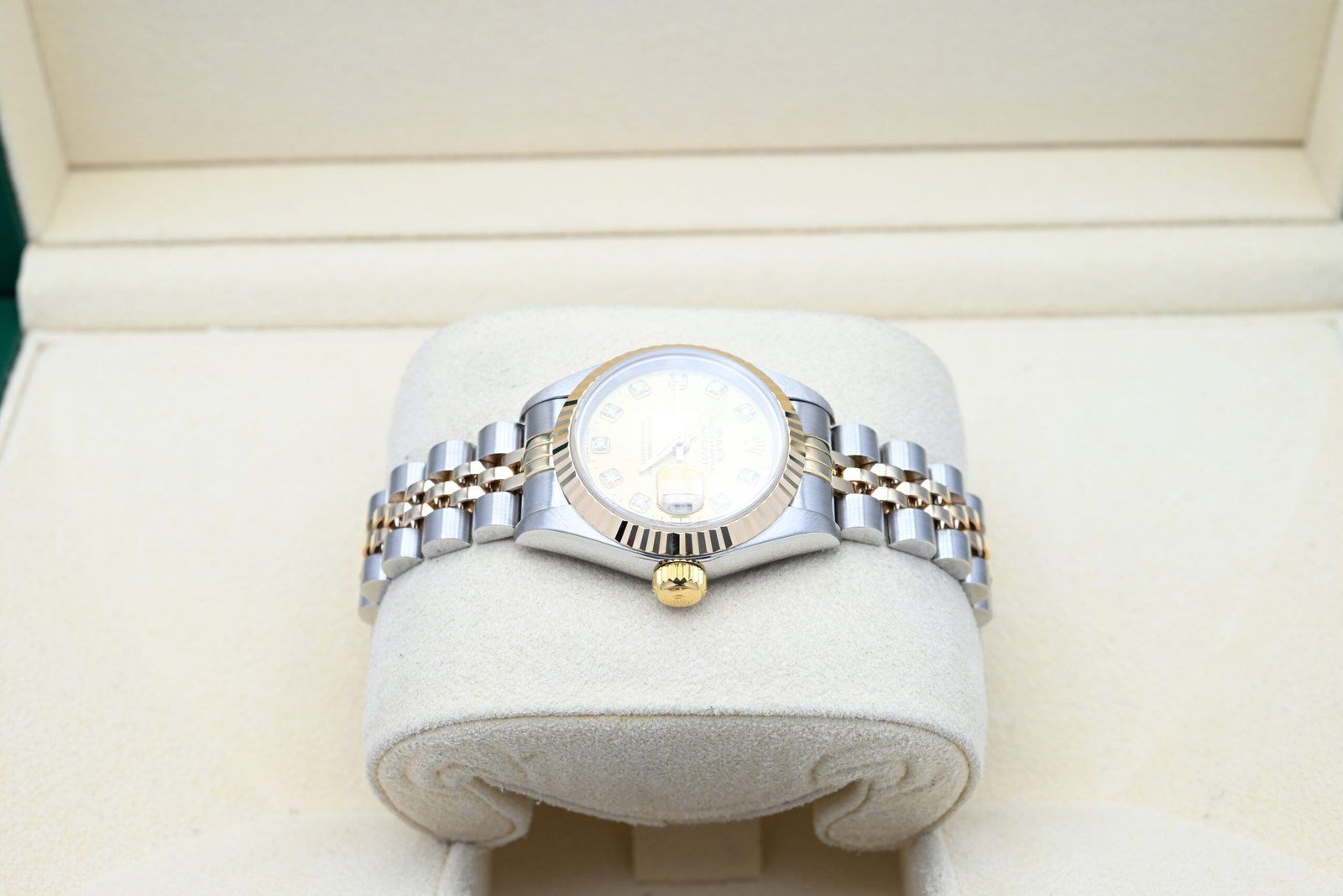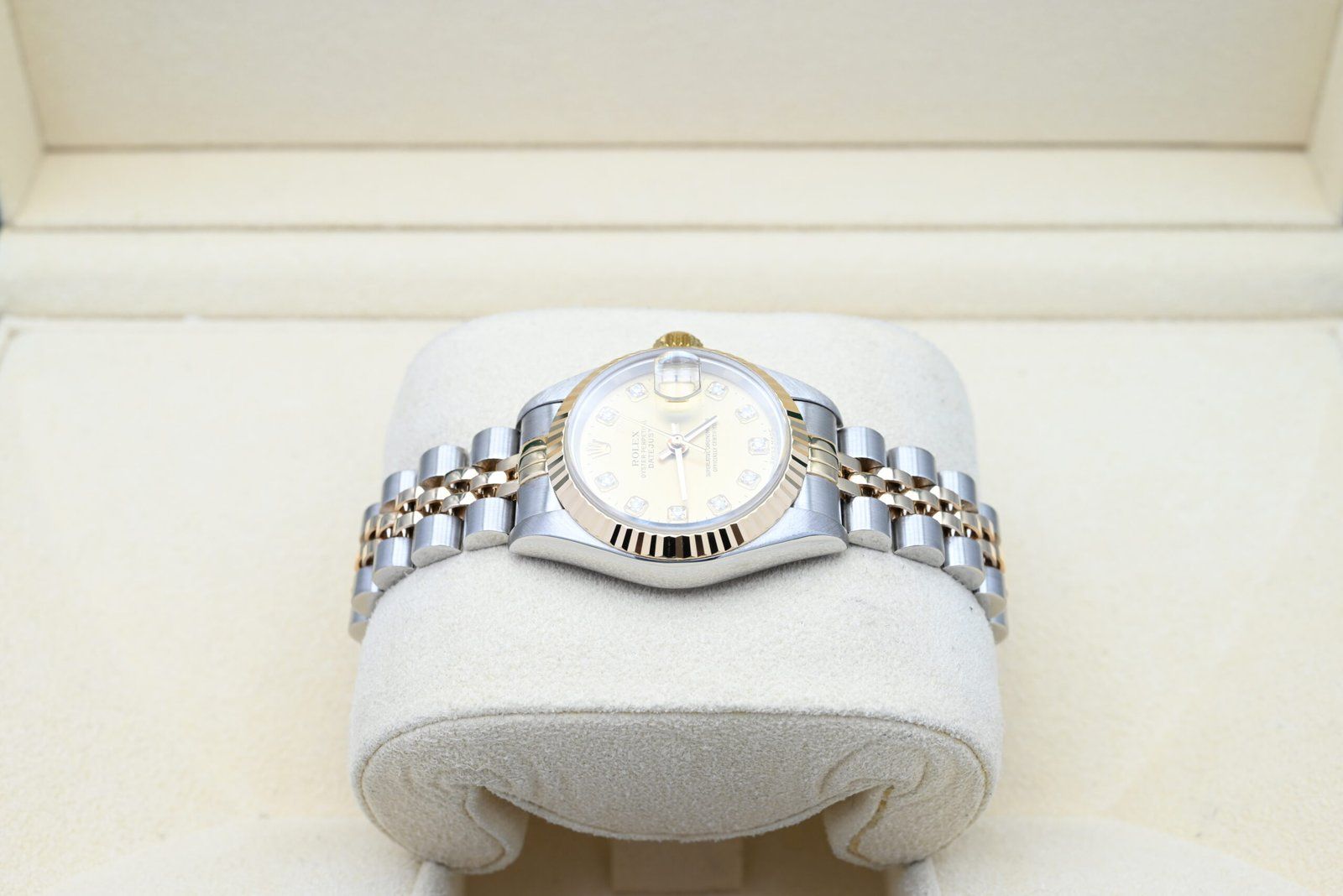 Rolex Lady-Datejust 79173 met de champagnekleurige diamanten wijzerplaat uit 2000 in uitstekende staat, inclusief de originele doos en papieren.