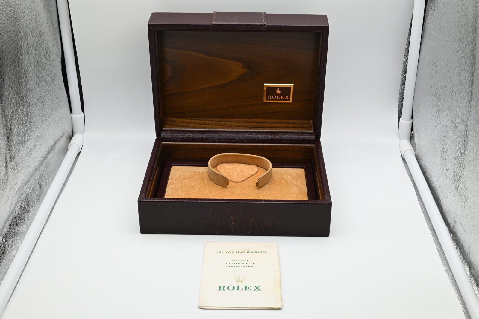 - Lichte gebruikssporen zoals haarlijntjes of kleine oppervlakkige krasjes. Kast, bezel en band behouden hun scherpe randen en oorspronkelijke vorm. Mogelijk professioneel gepolijst zonder de originele contouren aan te tasten. Mechanisch volledig functioneel.