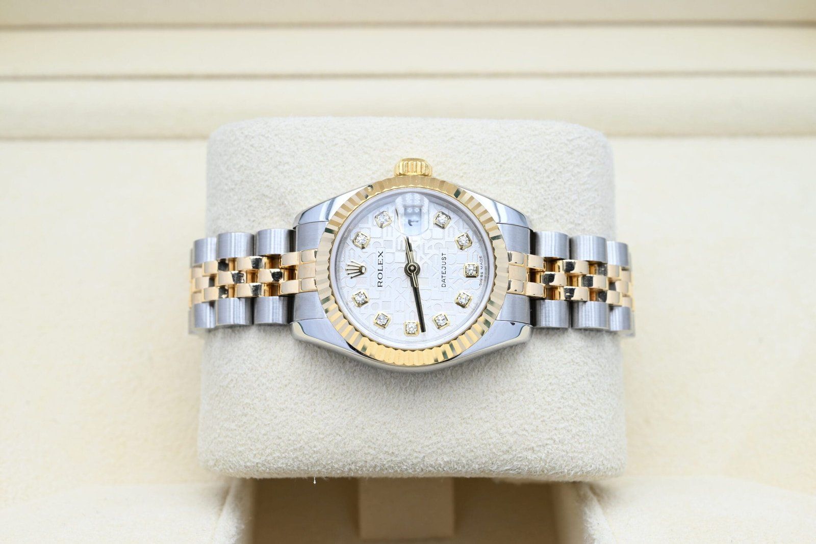Rolex Lady-Datejust 179173 with the white diamond dial from 2006 in excellent condition, comes complete with the full set.All of our watches have been thoroughly checked by our own watchmaker and serviced when needed.