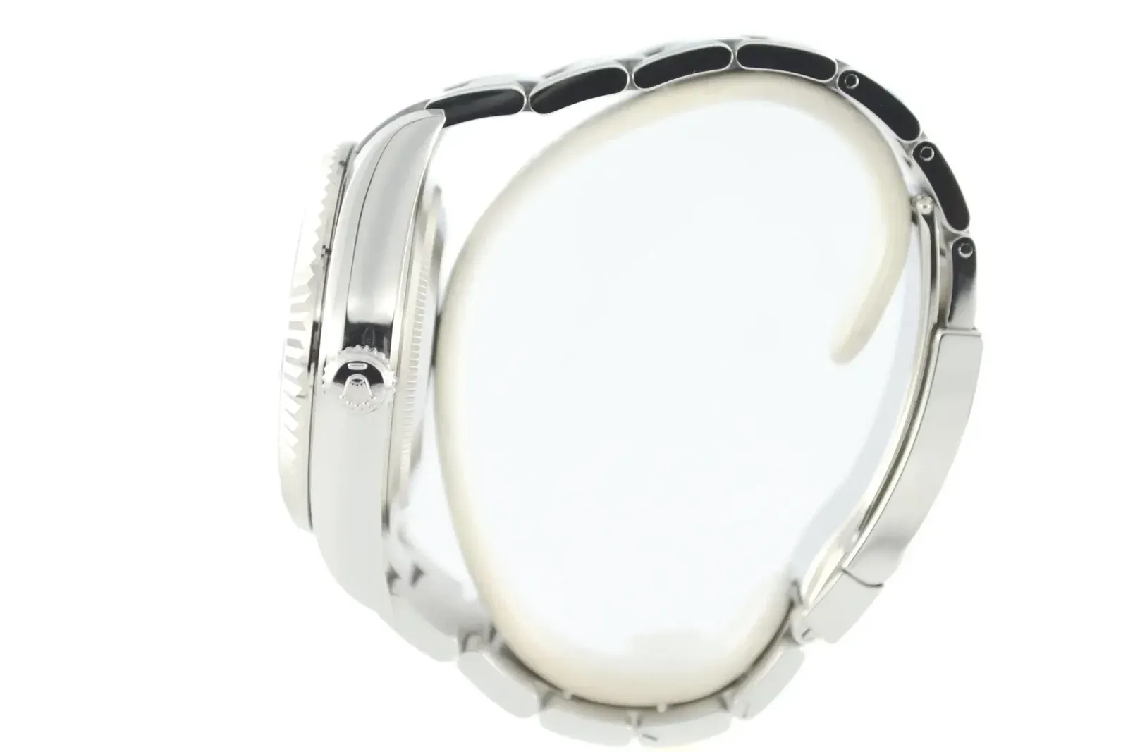 - Lichte gebruikssporen zoals haarlijntjes of kleine oppervlakkige krasjes. Kast, bezel en band behouden hun scherpe randen en oorspronkelijke vorm. Mogelijk professioneel gepolijst zonder de originele contouren aan te tasten. Mechanisch volledig functioneel.