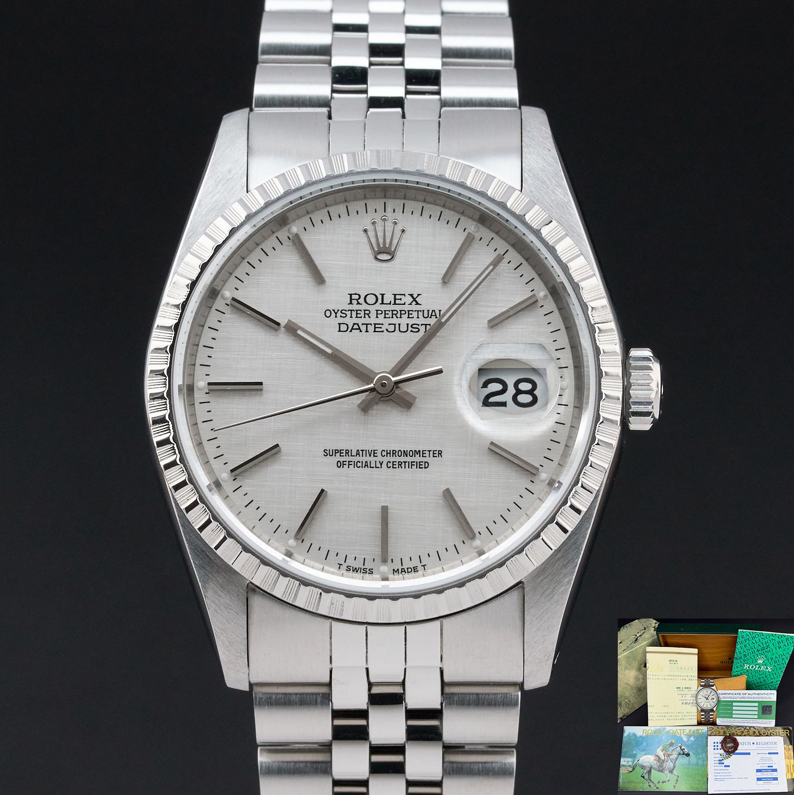 Rolex Datejust, 16220, 36mm, 1991, Steel, Silver Linen dial, Fullset, 1y warranty