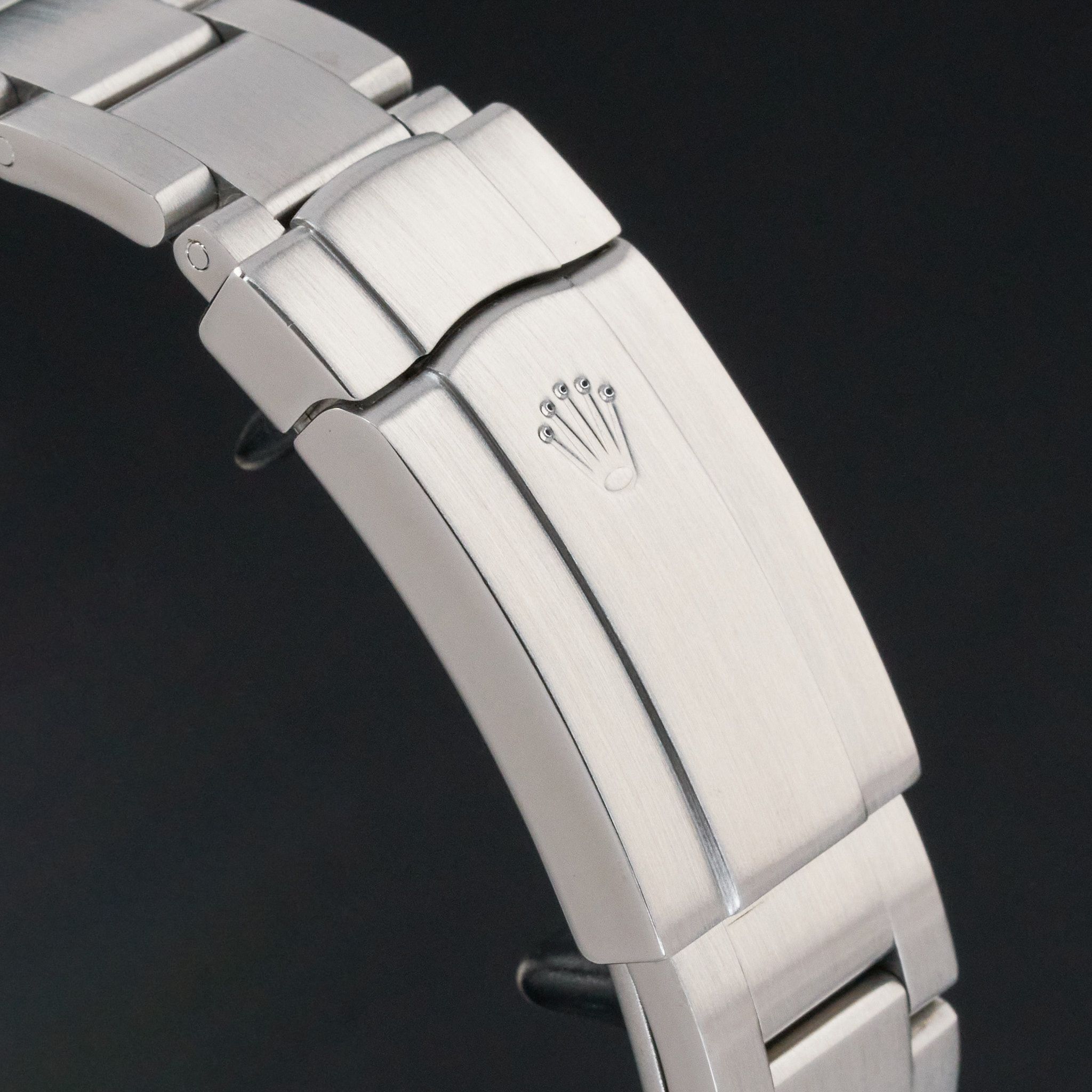 - Lichte gebruikssporen zoals haarlijntjes of kleine oppervlakkige krasjes. Kast, bezel en band behouden hun scherpe randen en oorspronkelijke vorm. Mogelijk professioneel gepolijst zonder de originele contouren aan te tasten. Mechanisch volledig functioneel.