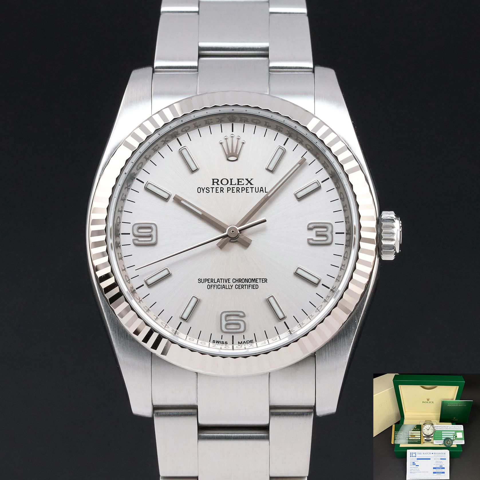 Rolex Oyster Perpetual, 116034, 36mm, 2014, Steel, Silver Arabic dial, Fullset, 1y warranty