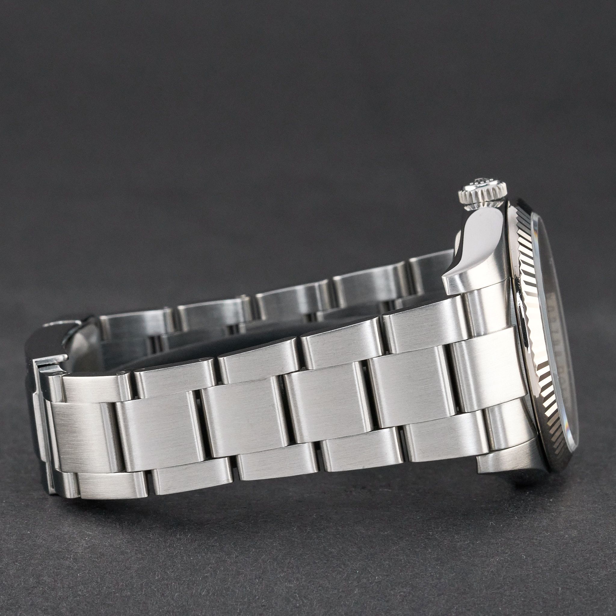 This Rolex Oyster Perpetual 116034 features a Silver Arabic dial and is crafted from stainless steel, with a production year of 2014.Case No: 5FY0XXXX