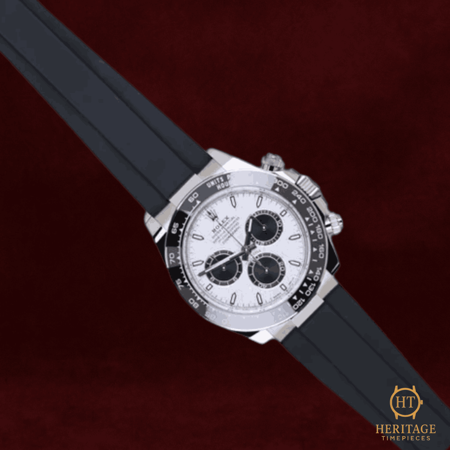 De Rolex Cosmograph Daytona referentie 126519LN biedt een unieke interpretatie van de beroemde chronograaf van het merk. Gemaakt van 18k witgoud en gecombineerd met de innovatieve Oysterflex-armband, balanceert dit model de prestige van edelmetaal met de veelzijdigheid van een moderne sporthorloge.