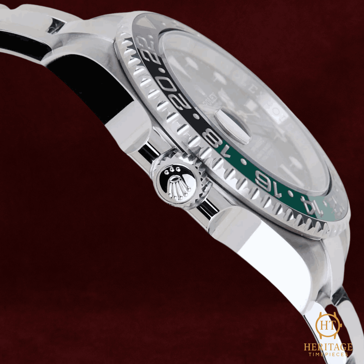 Heritage Narrative The Rolex GMT-Master II reference 126720VTNR represents a modern evolution of Rolex’s iconic travel watch. Featuring a left-handed crown configuration and the distinctive black and green Cerachrom bezel, the model introduces a bold reinterpretation of the GMT-Master lineage while maintaining its core dual time-zone functionality. Technical Specifications Reference:126720VTNR Year:March 2026 Movement:Rolex calibre 3285 automatic self-winding movement Case:40 mm Oyster case in stainless steel Bezel:Bidirectional rotating bezel with black and green Cerachrom insert Crystal:Scratch-resistant sapphire crystal Dial / Hands:Black dial with luminous hour markers and GMT hand Bracelet / Clasp:Rolex Oyster bracelet in stainless steel with Oysterlock safety clasp and Easylink extension Water resistance:100 m / 330 ft (manufacturer specification) Condition & Inclusions Overall grade:New / Unworn Service status:Factory condition Set:Full set — includes original box and international warranty card Warranty:International Rolex warranty valid until March 2031 Shipping & Logistics Stored off-site and shipped fully insured within 1–3 business days.Worldwide shipping available; buyer responsible for any import duties or taxes. Shipping & Returns Complimentary insured worldwide shipping and a 14-day return window (watch must be returned in the same condition supplied). Each timepiece is authenticated, time-tested, and professionally prepared prior to dispatch. All shipments include secure packaging, tracking, and full insurance coverage.