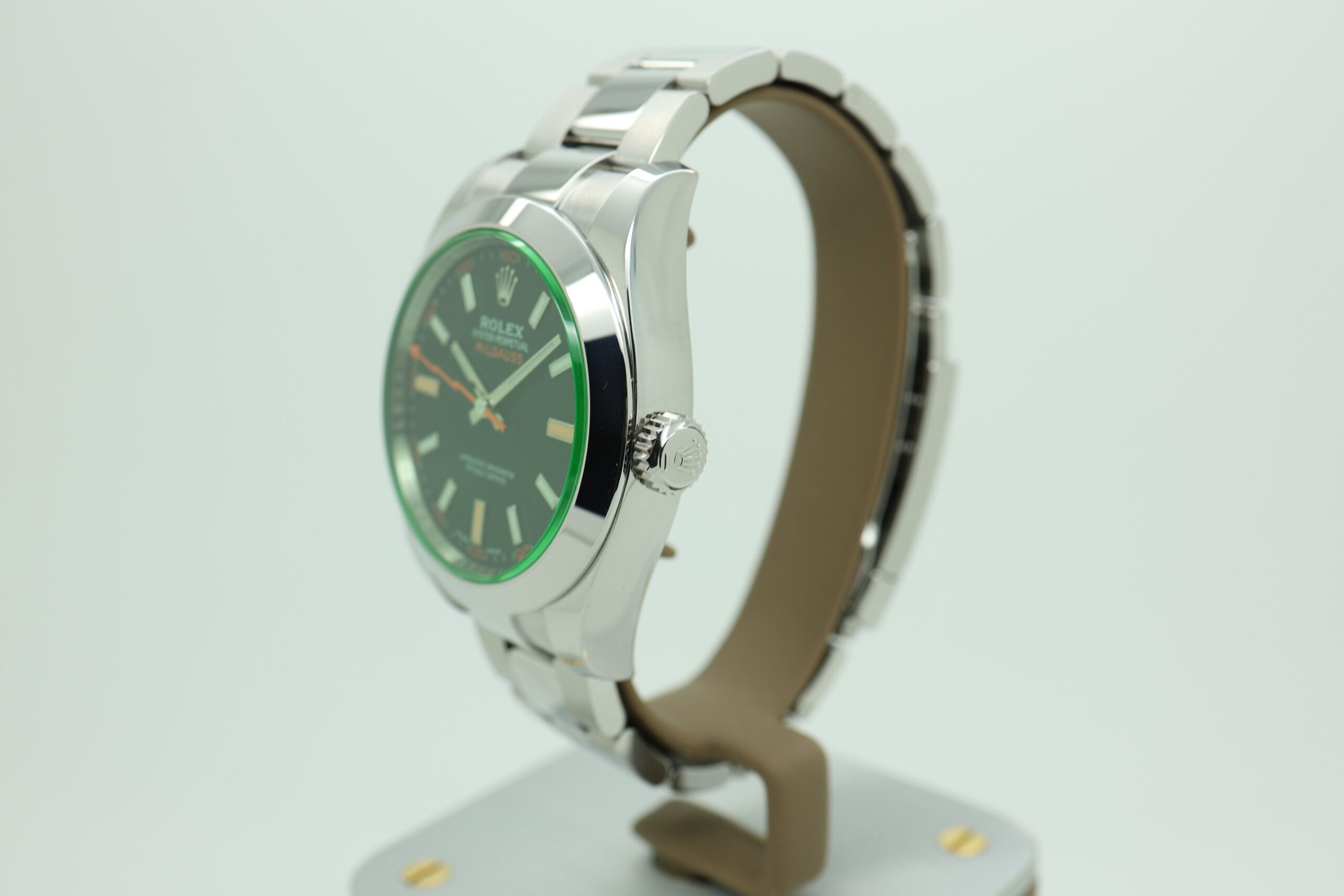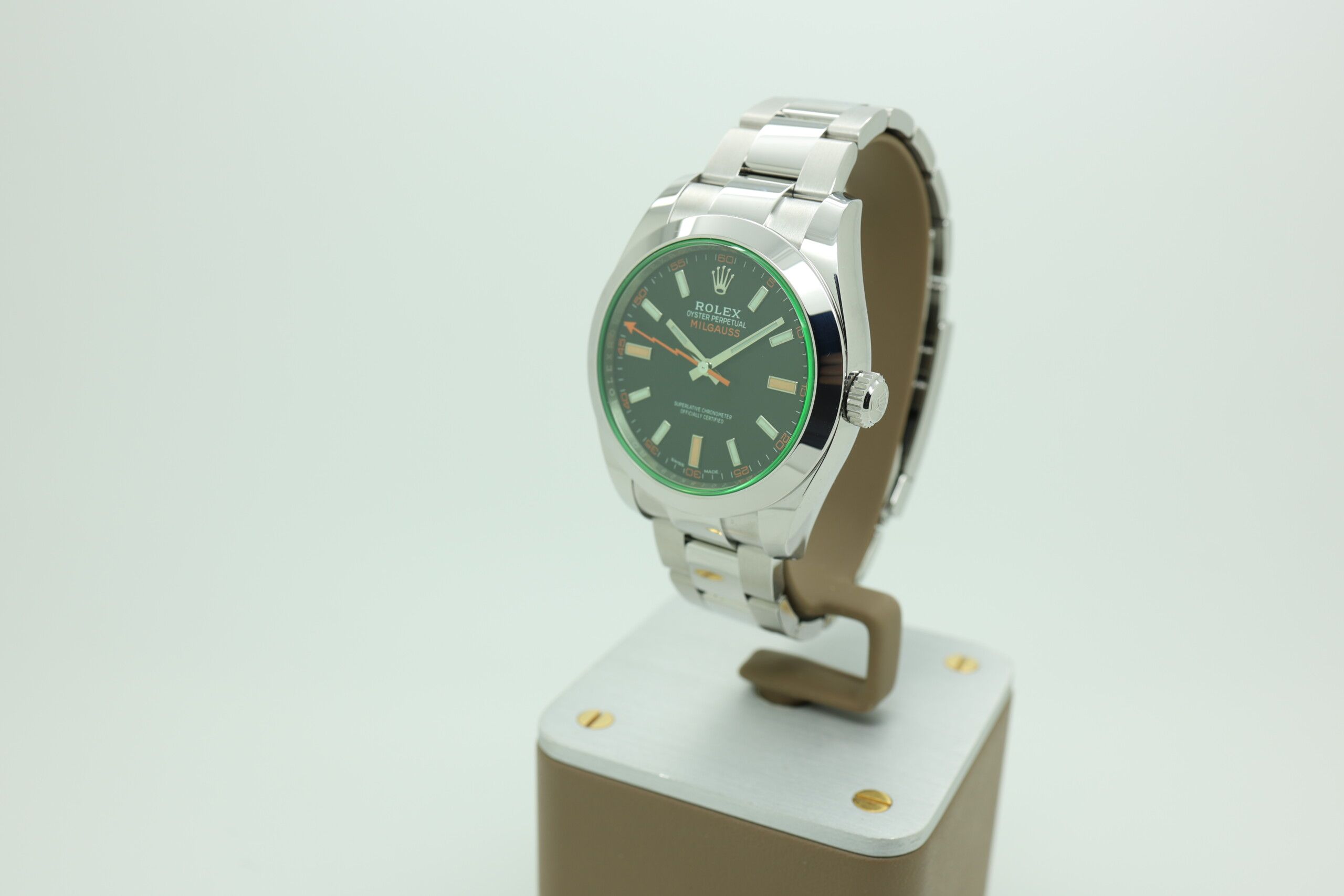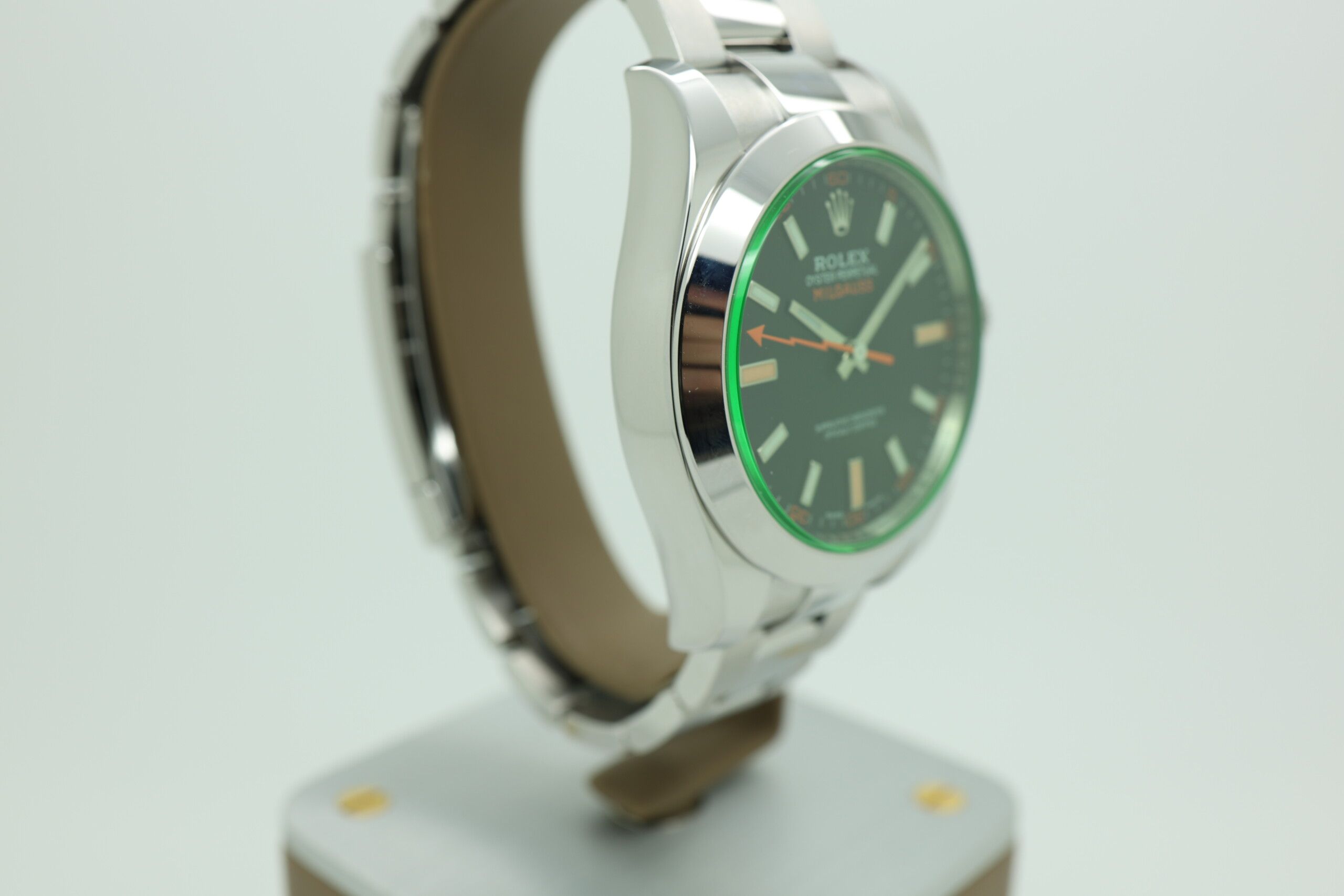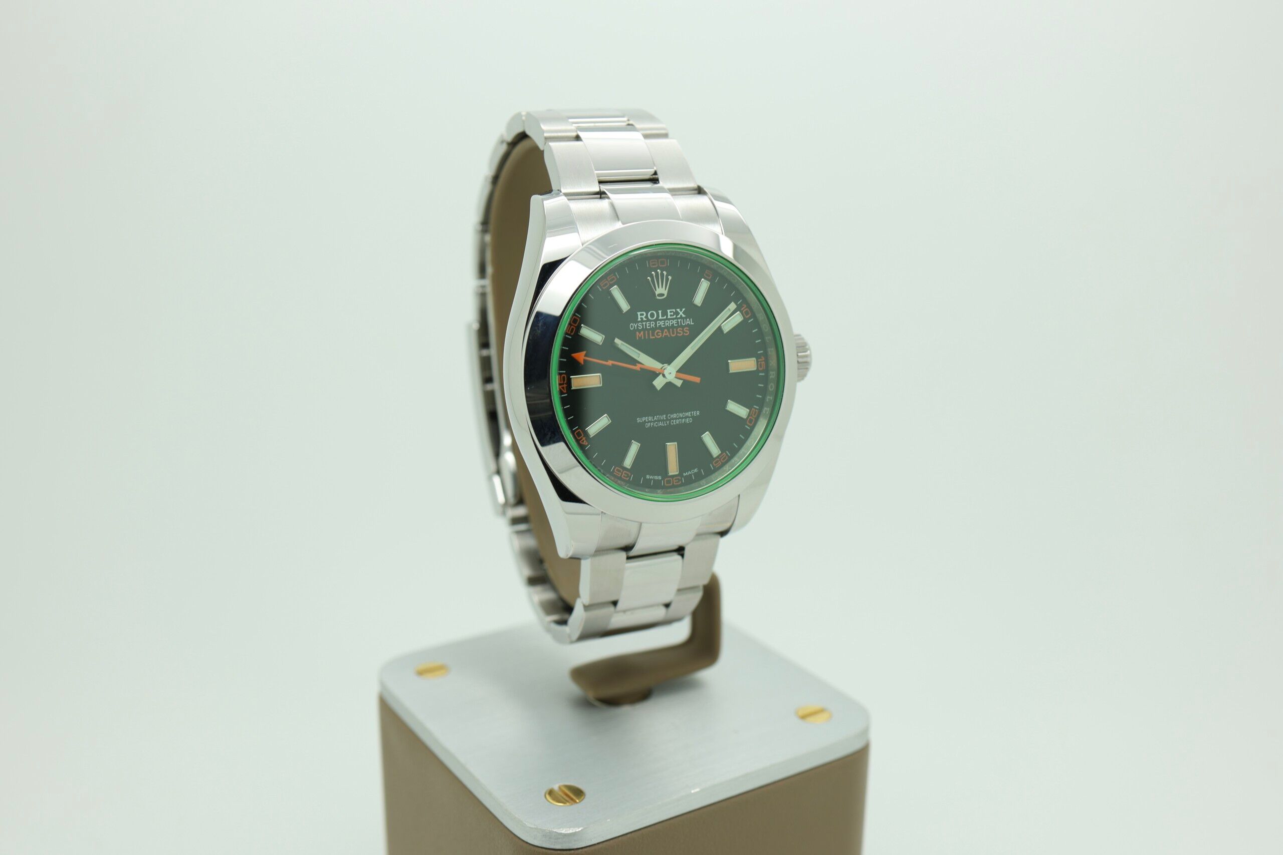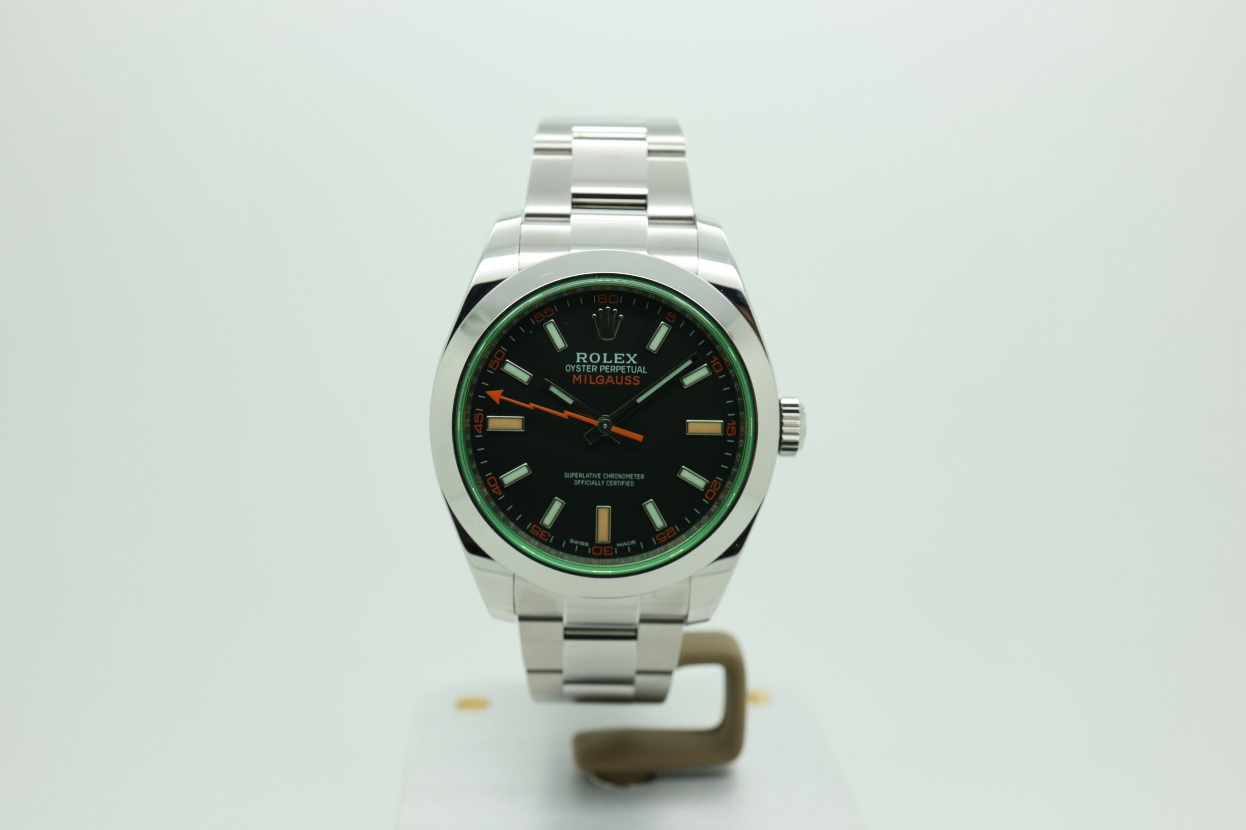Fun fact: The green sapphire crystal found on the Milgauss 116400GV is extremely difficult to manufacture, and Rolex has never revealed the exact process — making it one of the brand’s most unique and mysterious design elements.