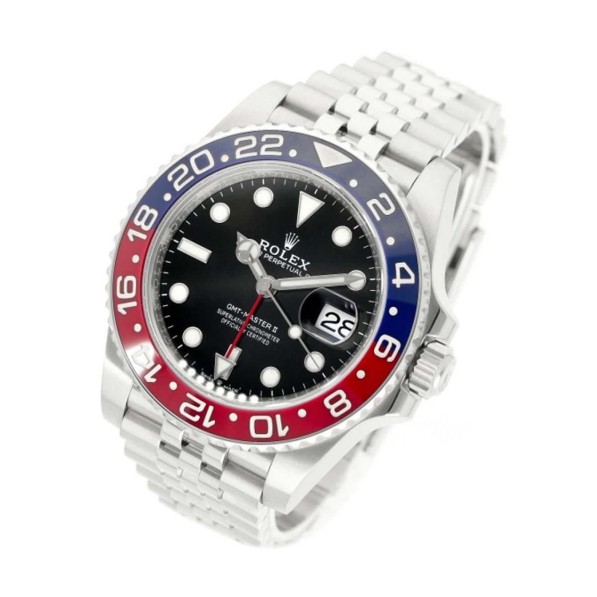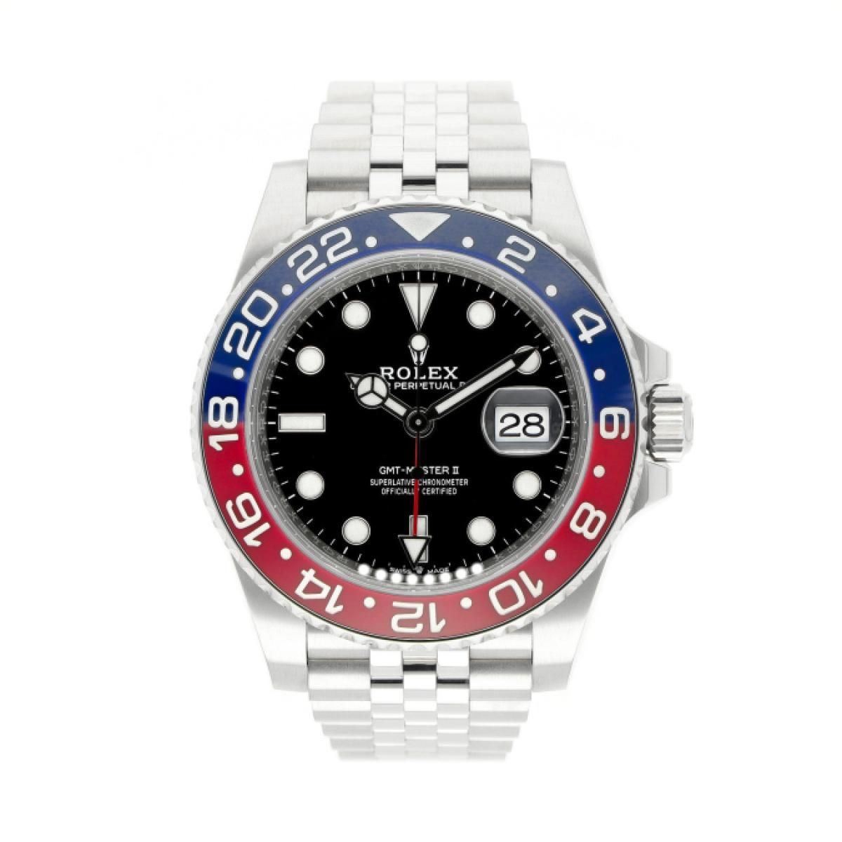 2022 Rolex GMT-Master II with a 40mm stainless steel case and folding clasp. This men's Rolex watch is in very good condition.