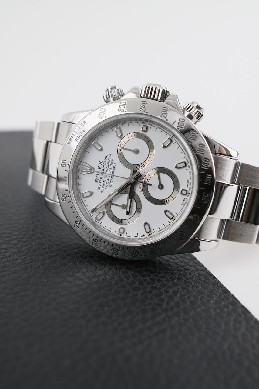 **Watch Description**Ready for your new dream watch? Perhaps this beautiful Rolex Daytona made of Steel will soon be on your wrist. Whether vintage or modern - with over 200 watches in stock, we always have your new luxury watch available for you immediately - whether you are a first-time buyer or your watch collection needs a new addition.