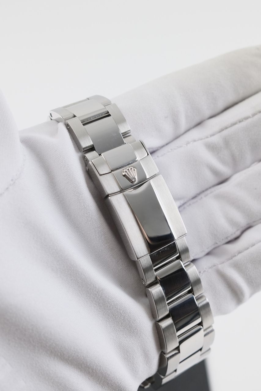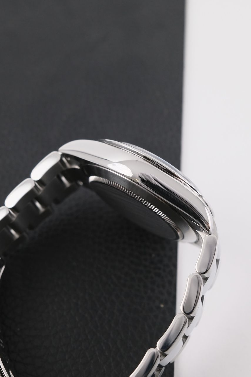 - Lichte gebruikssporen zoals haarlijntjes of kleine oppervlakkige krasjes. Kast, bezel en band behouden hun scherpe randen en oorspronkelijke vorm. Mogelijk professioneel gepolijst zonder de originele contouren aan te tasten. Mechanisch volledig functioneel.