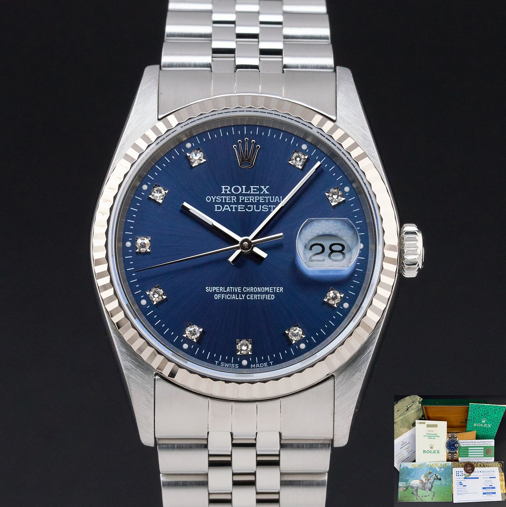 Rolex Datejust, 16234, 36mm, 1994, Steel, Blue Small Diamond dial, Fullset, 1y warranty