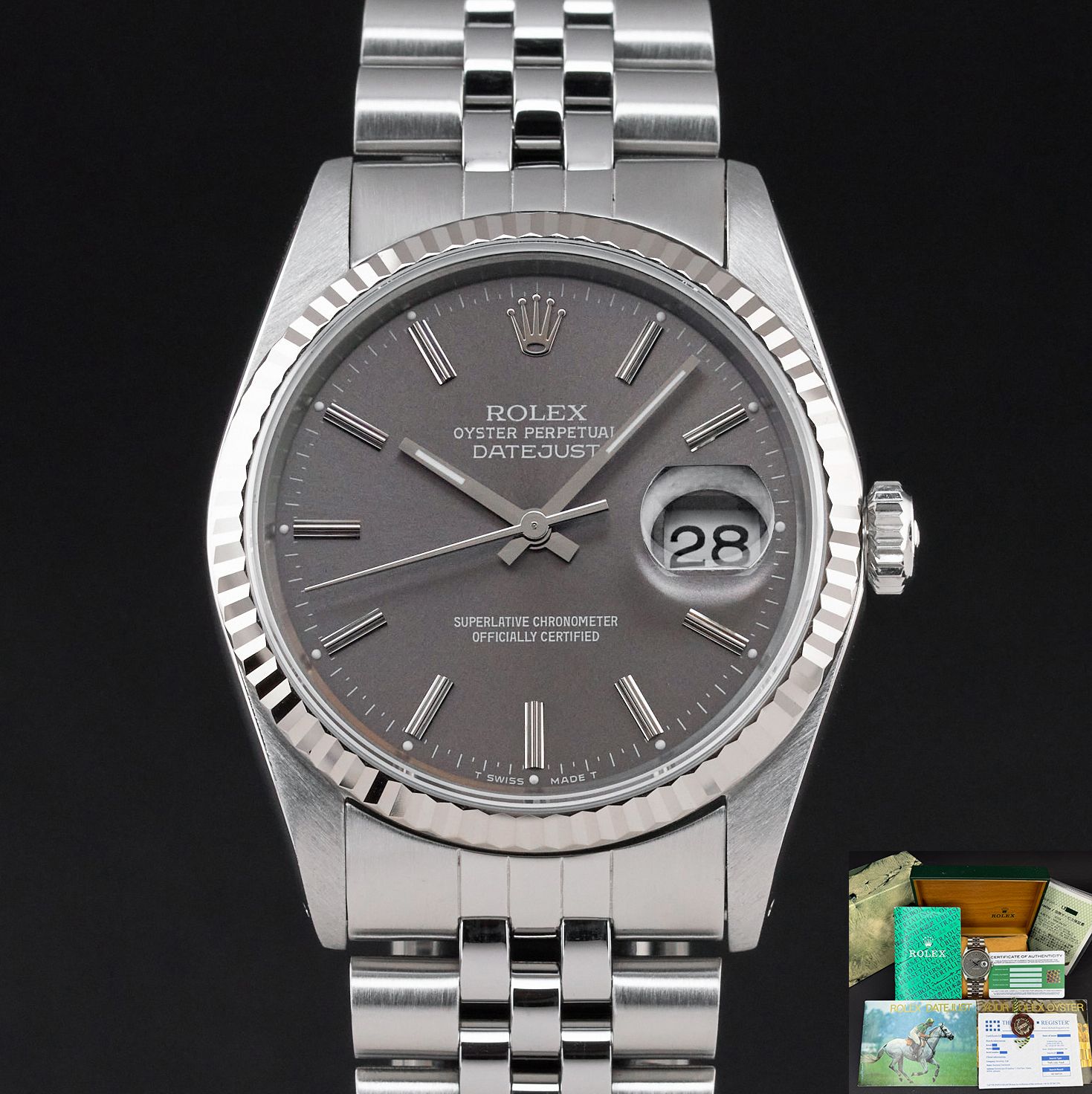 Rolex Datejust 36 Rolex Datejust, 16234, 36mm, 1989, Steel, Grey dial, Box, 1y warranty