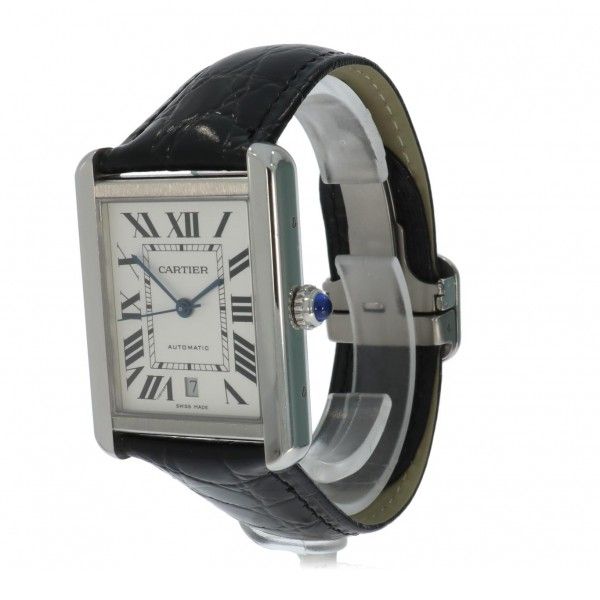 Cartier Tank Solo XL Automatic WSTA0029. Like unworn Cartier Tank Solo in steel on leather strap Xl model with automatic movement and date window Box and papers complete (2020/07)