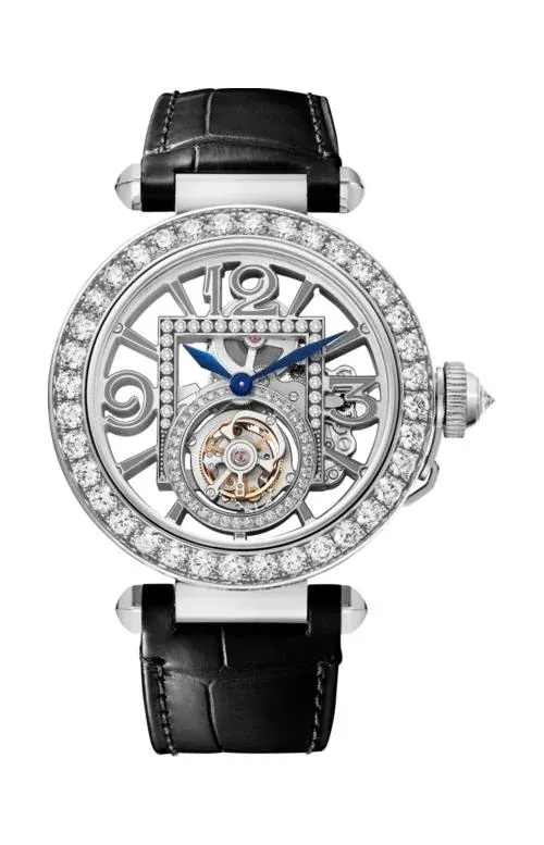 Cartier Pasha De Cartier 41 Mm, Manuale, Oro Bianco, Diamanti, Quadrante Scheletrato, Tourbillon, 2 Cinturini HPI01435