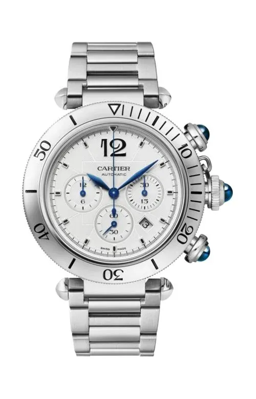 Cartier Pasha De Cartier 41 mm, chronograaf, automatisch uurwerk, metalen armband en leren band WSPA0018