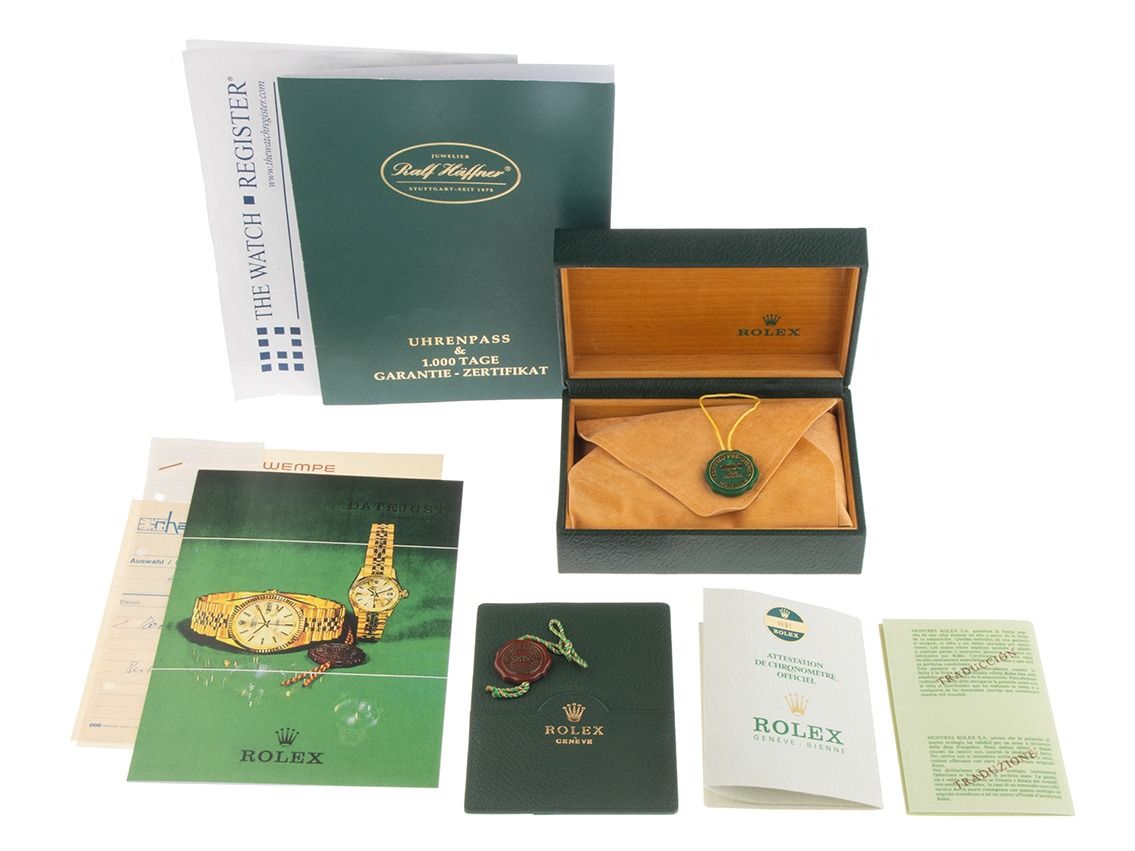 Inklusive certified pre owned Siegel / Uhrenpass mit einem Farbbild, der genauen Beschreibung sowie dem Wiederbeschaffungswert der Uhr über 6900,-€ und 1000 Tage Garantie ab Kaufdatum.