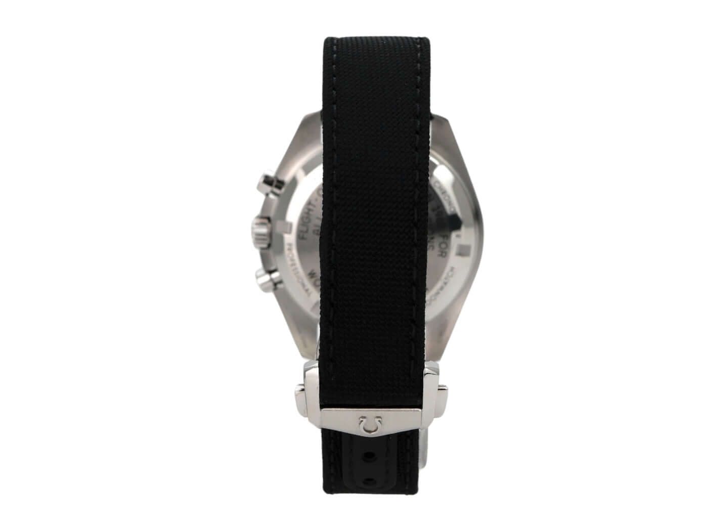 Behuizing gemaakt van gepolijst en satijn afgewerkt roestvrij staal, behuizingsdiameter 42 mm, behuizingshoogte 14,3 mm, roestvrijstalen bezel met zwarte insert en tachymeterschaal, zwarte textielen band met vouwsluiting, zwarte wijzerplaat met aangebrachte luminescerende indexen, luminescerende wijzers, handopwindmechanisme, kaliber Omega 3861 met 26 juwelen, 21.600 A/h, gangreserve van ongeveer 50 uur, chronograaf, Master Chronometer, Hesalite glas, geschroefde en gegraveerde roestvrijstalen achterkant, waterbestendig tot 5 bar.