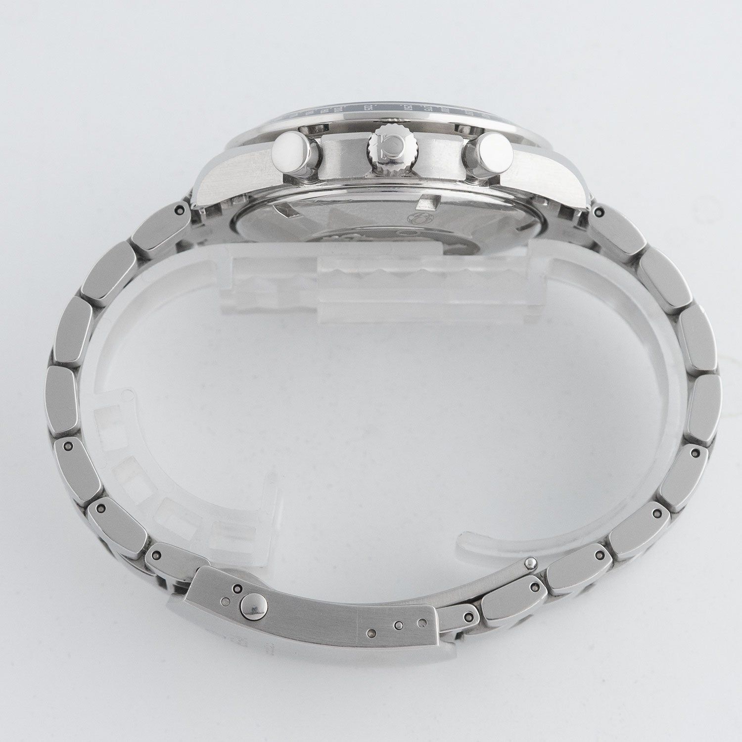 - Lichte gebruikssporen zoals haarlijntjes of kleine oppervlakkige krasjes. Kast, bezel en band behouden hun scherpe randen en oorspronkelijke vorm. Mogelijk professioneel gepolijst zonder de originele contouren aan te tasten. Mechanisch volledig functioneel.