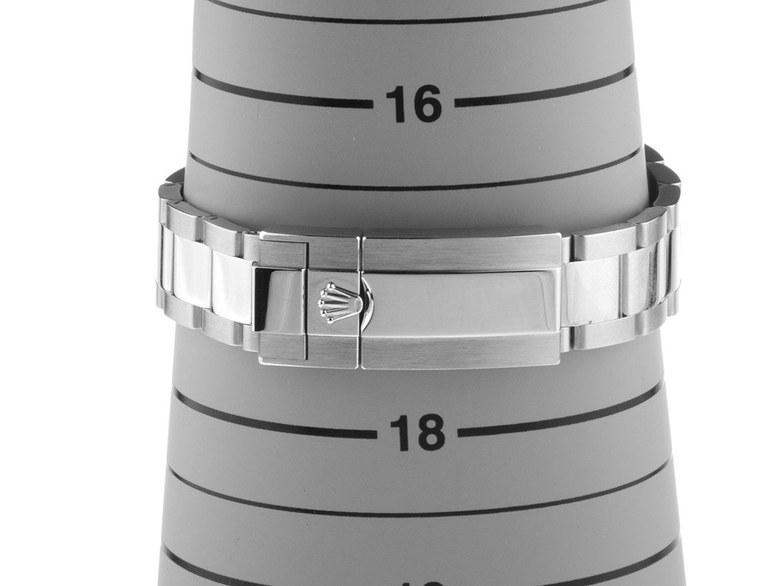 - Lichte gebruikssporen zoals haarlijntjes of kleine oppervlakkige krasjes. Kast, bezel en band behouden hun scherpe randen en oorspronkelijke vorm. Mogelijk professioneel gepolijst zonder de originele contouren aan te tasten. Mechanisch volledig functioneel.