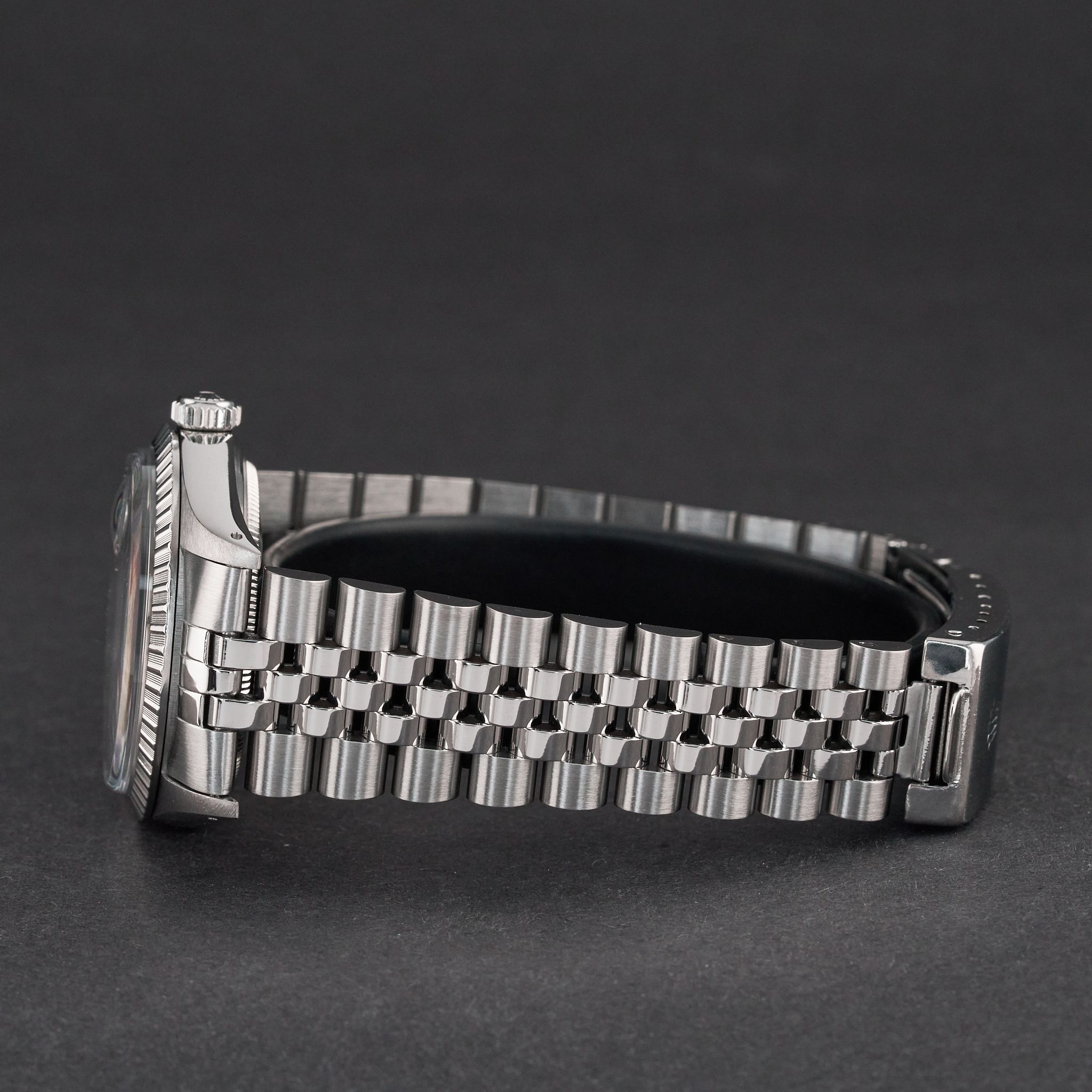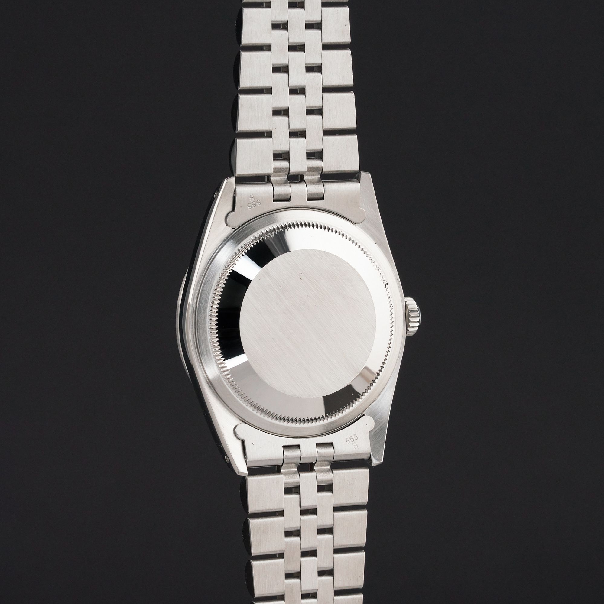 - Lichte gebruikssporen zoals haarlijntjes of kleine oppervlakkige krasjes. Kast, bezel en band behouden hun scherpe randen en oorspronkelijke vorm. Mogelijk professioneel gepolijst zonder de originele contouren aan te tasten. Mechanisch volledig functioneel.