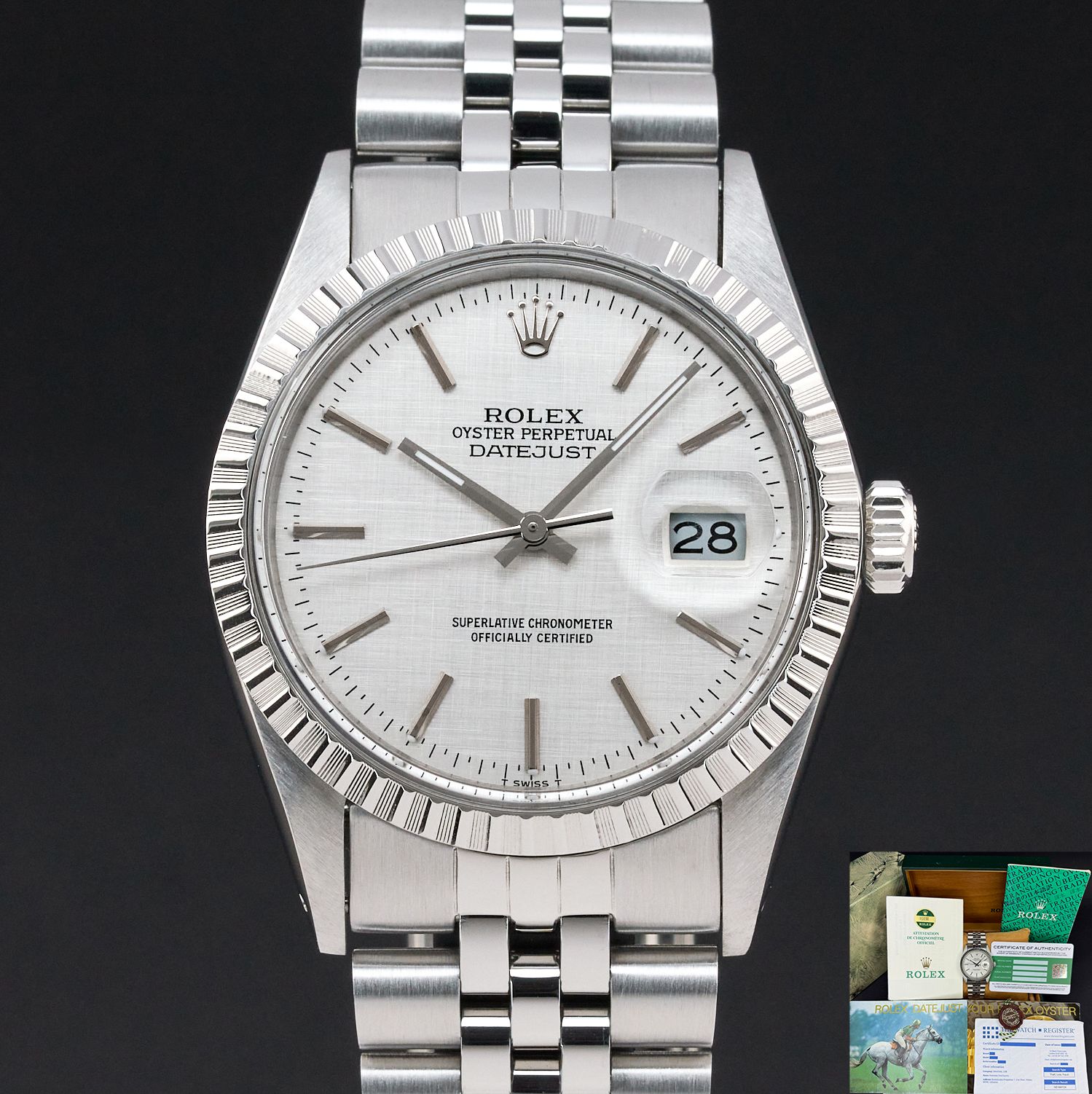 Rolex Datejust, 16030, 36mm, 1986, Steel, Silver Linen dial, Fullset, 1y warranty