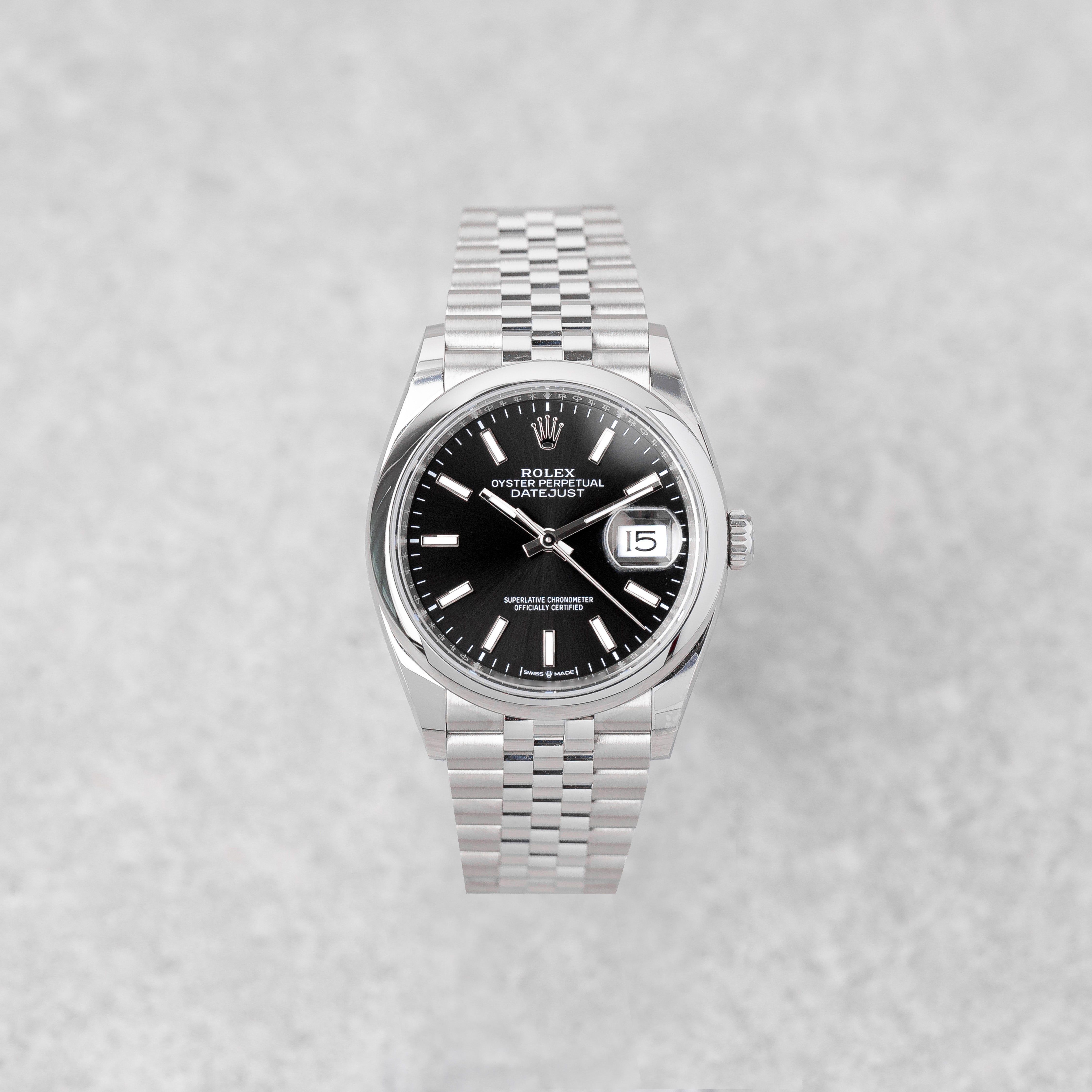 This elegant Rolex Datejust 36 features a sleek black dial paired with the iconic Jubilee bracelet, offering timeless sophistication. Sold as a Full Set from 04/2026, it is in brand new condition and backed by the 5-year Rolex international guarantee. A versatile classic, perfect for daily wear or any collection.