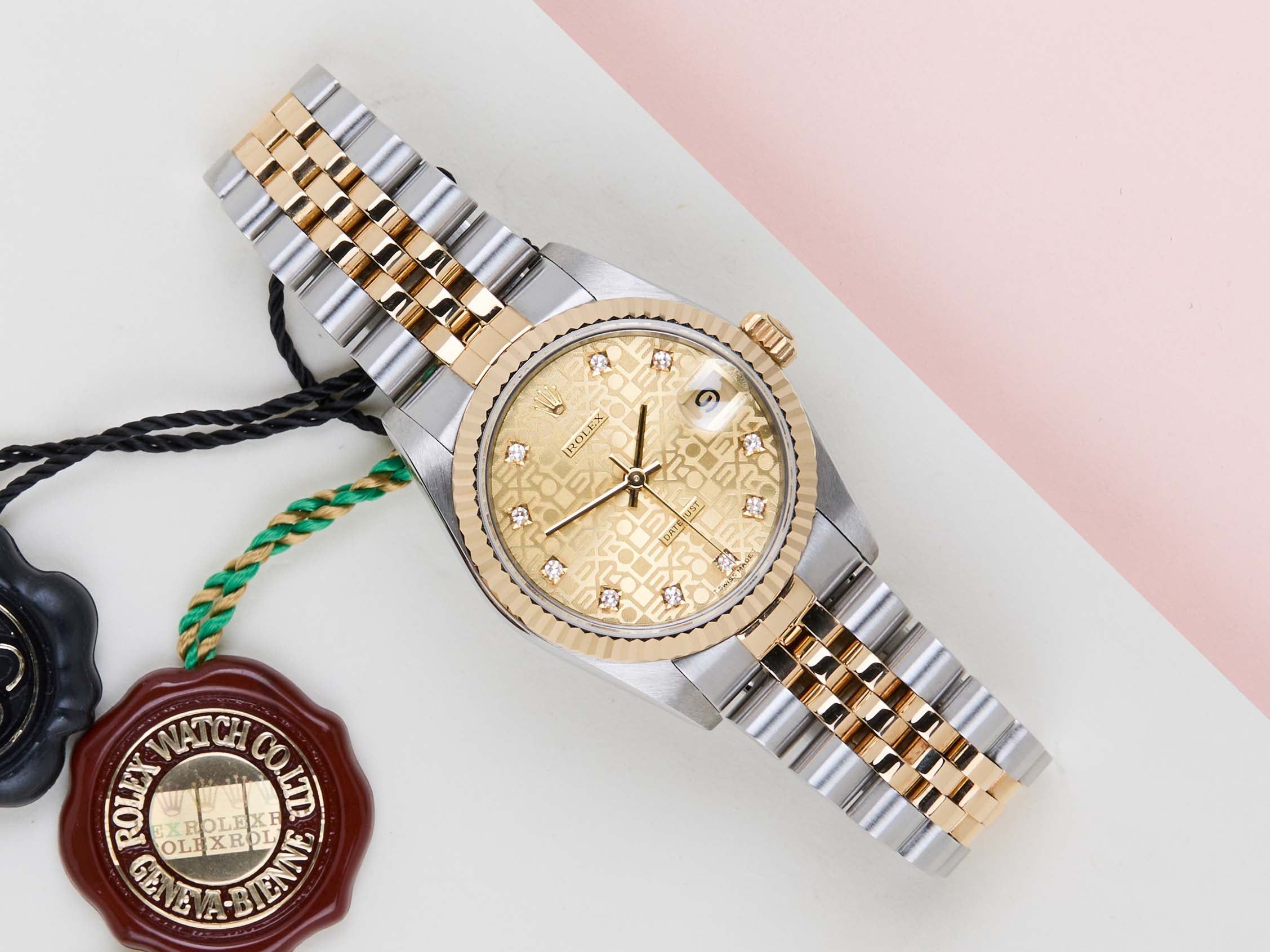 Rolex introduced the original Datejust in 1945 to celebrate the company's 40th anniversary. Due to the various case sizes and materials, the Datejust has been ingrained in Rolex's history and remains incredibly popular for 75 years.This Rolex Datejust 31 'Champagne Diamond Jubilee Dial - Jubilee' was sold for the first time in June 1996.Furthermore, This Rolex Datejust is made of a combination of 18ct Yellow Gold and stainless steel and is fitted with a Jubilee bracelet.This Rolex Datejust 31 is in Mint condition and comes with the original Rolex Warranty Card and Box. Furthermore, the watch has been serviced by our watchmaker, and therefore it comes with One Year of Steiner Warranty.