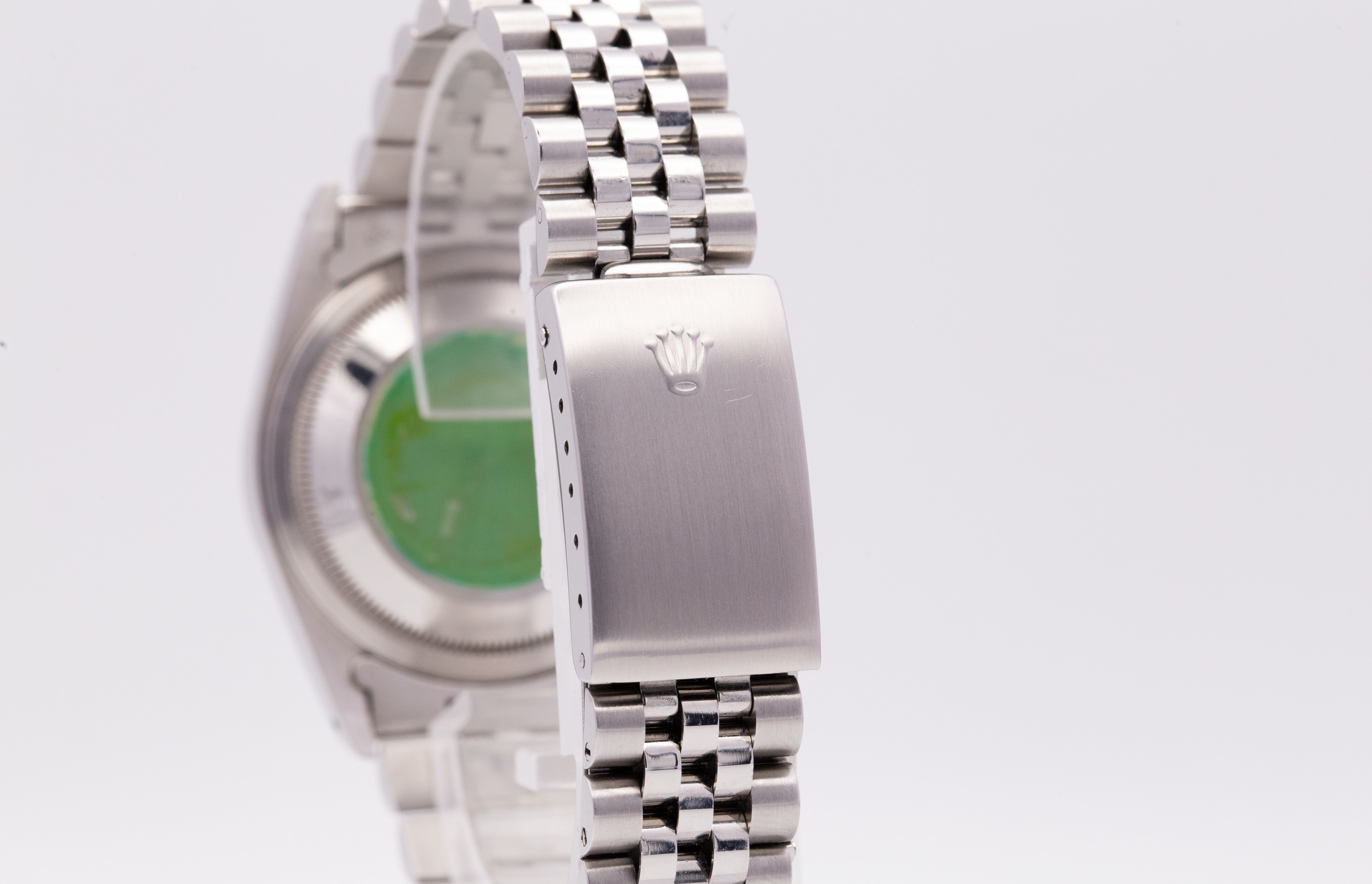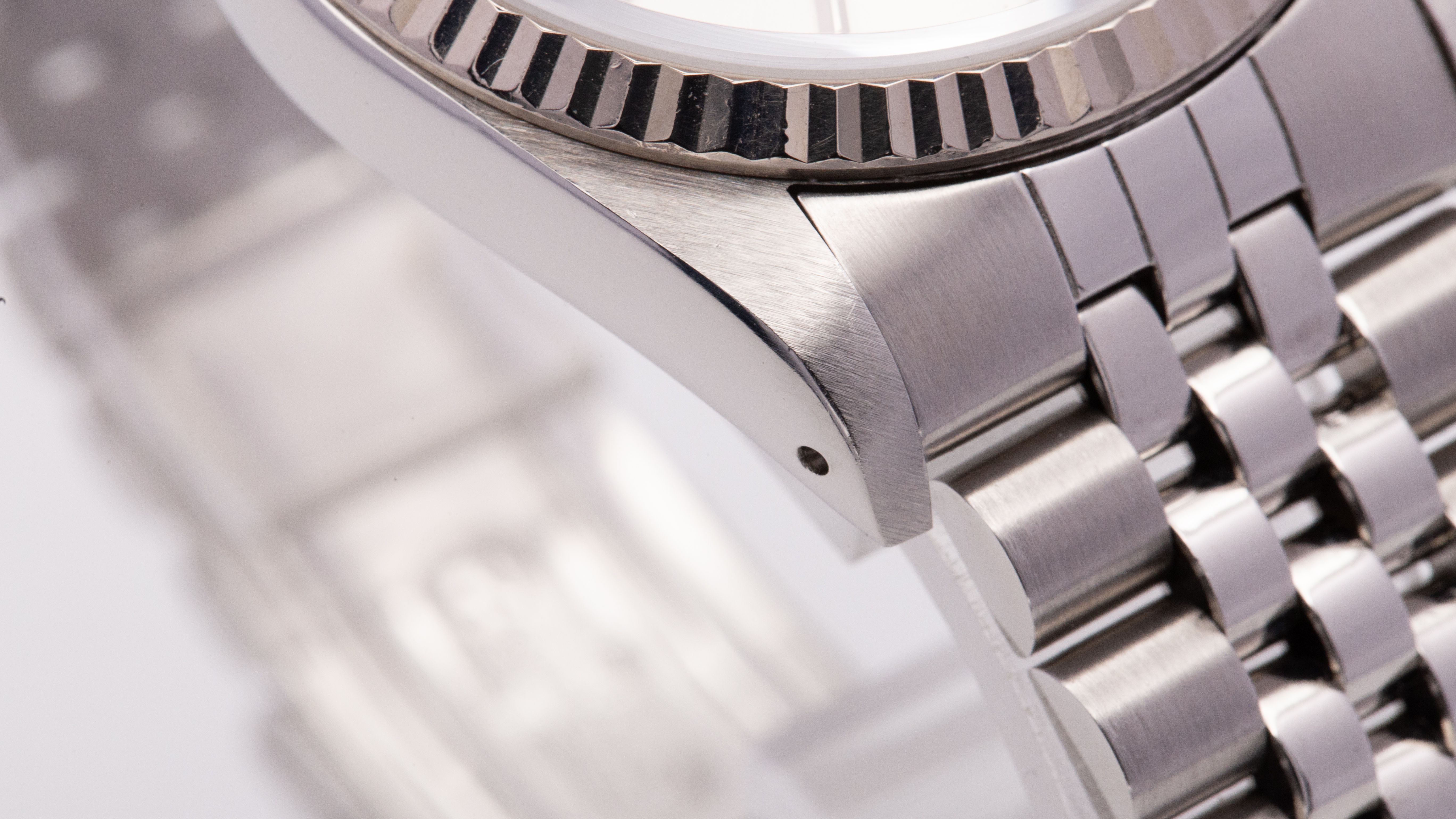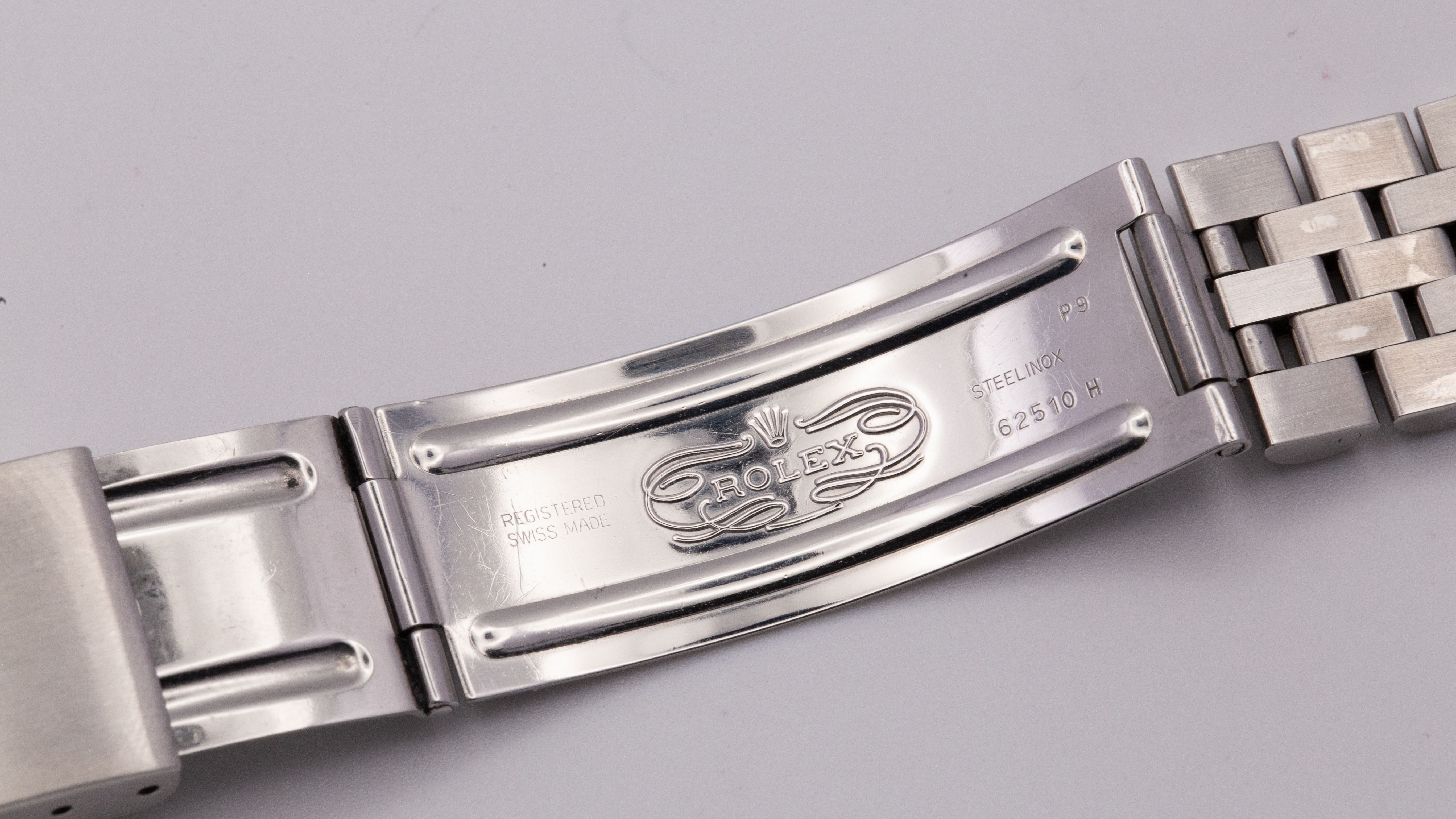 Het Jubilee-band Ref. 62510H met de correcte 555B eindlinks verkeert in zeer goede staat. De periodiek correcte sluiting met de Clasp Code P9 (09/1991) past mooi bij de E-serie. Het band vertoont nauwelijks stretch en is voor dit model uitzonderlijk goed bewaard.