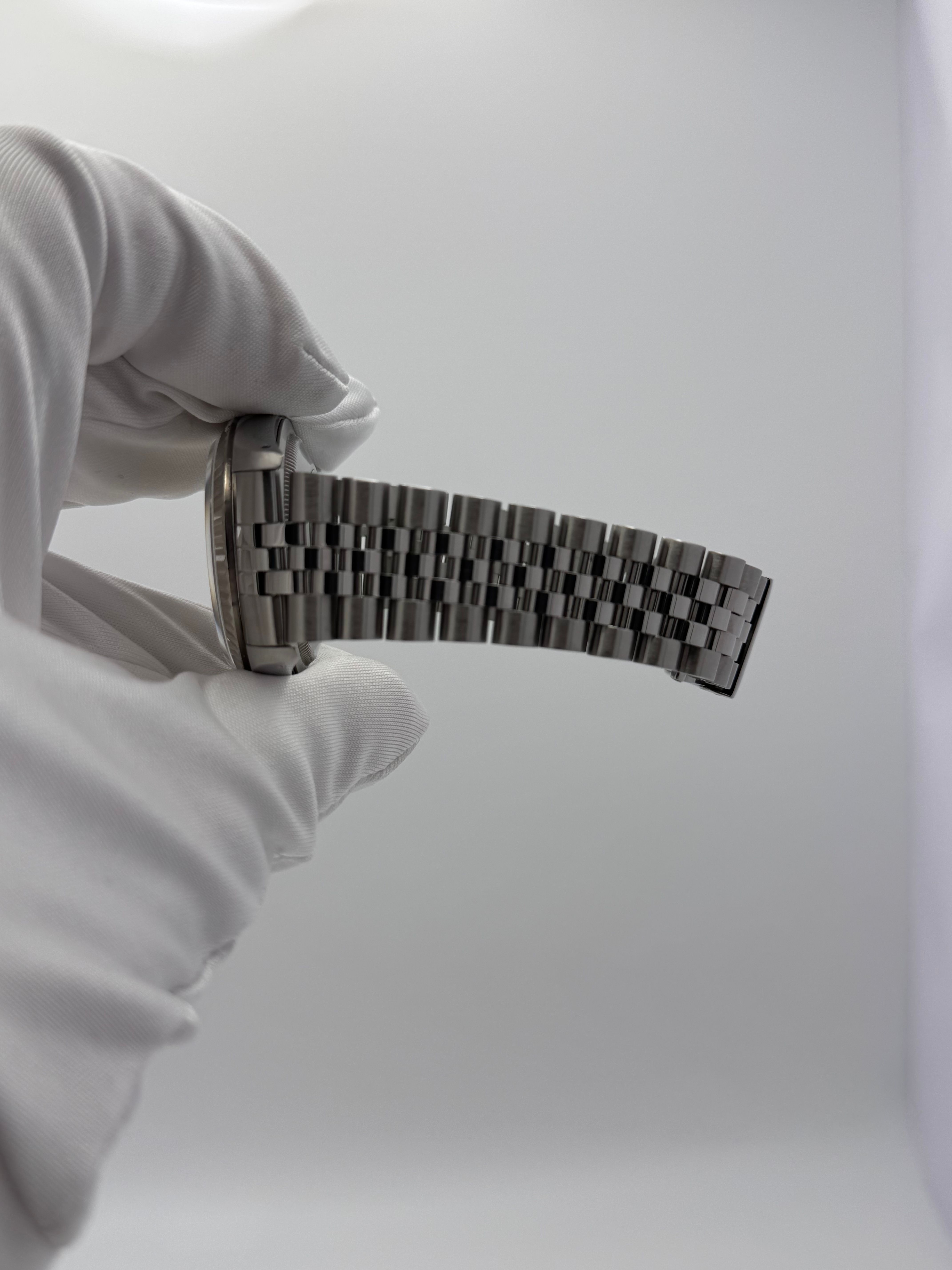 Zum Verkauf steht eine Rolex Datejust 36 Ref. 16234 mit silbernem Zifferblatt aus der E-Serie (ca. 1990) im sehr guten Zustand. Uhr & Design Die Datejust 36 16234 von Rolex gehört zu den klassischen 5-stelligen Referenzen und überzeugt durch ihre zeitlose, elegante Erscheinung mit einem eleganten 36mm Edelstahl Gehäuse und einer geriffelten 18k Weißgoldlünette. Dieses Exemplar präsentiert sich mit einem silbernen Zifferblatt in einer stimmigen und klassischen Konfiguration mit dem Jubilee Armband. Gehäuse Das Gehäuse befindet sich in einem sehr guten Zustand mit scharfen Kanten, klar erkennbarem Schliff auf den Hörnern und insgesamt gut erhaltener Substanz („dickes Case“). Die geriffelte Weißgoldlünette zeigt sich ebenfalls in sehr gutem Zustand mit klar ausgeprägten Kanten, nicht rundpoliert, sehr wichtig bei diesem Modell! Ein Caseback-Sticker ist noch vorhanden, was den insgesamt schonenden Umgang zusätzlich unterstreicht. Armband Das Jubilee-Band Ref. 62510H mit den korrekten 555B Endlinks befindet sich in sehr gutem Zustand. Die periodisch korrekte Schließe mit dem Clasp Code P9 (09/1991) passt stimmig zur E-Serie. Das Band weist kaum Stretch auf und ist für dieses Modell außergewöhnlich gut erhalten. Werk Im Inneren arbeitet das bewährte Rolex Kaliber 3135, bekannt für seine Robustheit und Zuverlässigkeit. Die Uhr läuft stabil mit ca. -2 Sekunden pro Tag bei einer Amplitude von rund 250 Grad. Die Leuchtmasse auf dem Zifferblatt wurde erneuert und leuchtet daher sehr stark. Sicherheit Die Uhr wurde im Watch Register geprüft und ist dort ohne Auffälligkeiten hinterlegt. Lieferumfang Uhr Rolex Service Pouch Kontakt & Erreichbarkeit Direkter, unkomplizierter Kontakt – per Chat oder telefonisch. Anfragen beantworten wir in der Regel kurzfristig und verbindlich. Unser Qualitätsanspruch Wir bieten ausschließlich Uhren an, die wir selbst ohne Einschränkungen kaufen würden. Jede Uhr wird vor dem Verkauf sorgfältig geprüft: - Werkfunktion und Gangverhalten - Authentizität und Originalität - Optischer Gesamtzustand Nur Stücke, die unseren Standards entsprechen, gehen online. Warum Sie bei uns kaufen sollten: - 100 % Echtheit – garantiert, ohne Ausnahmen - Sichere Abwicklung über den Wristler Checkout - Rechnung & Dokumentation inklusive Echtheitszertifikat und Auszug aus The Watch Register - 12 Monate Gewährleistung gemäß unseren AGB - Weltweiter Expressversand, voll versichert (UPS, FedEx oder DHL Express) - 14 Tage Rückgaberecht nach gesetzlichen Vorgaben Wichtige Hinweise - Teilen Sie uns gerne Ihren Handgelenkumfang mit, wir passen das Band vor Versand an. - Weitere Detailbilder erhalten Sie jederzeit auf Anfrage. - Bei Lieferungen außerhalb der EU können zusätzliche Einfuhrabgaben entstehen. - Eingriffe durch Dritte führen zum Erlöschen der Gewährleistung. - Wasserdichtigkeit ist keine dauerhaft garantierbare Eigenschaft. - Lagerung erfolgt aus Sicherheitsgründen im Bankschließfach, Besichtigung nach Terminvereinbarung möglich.