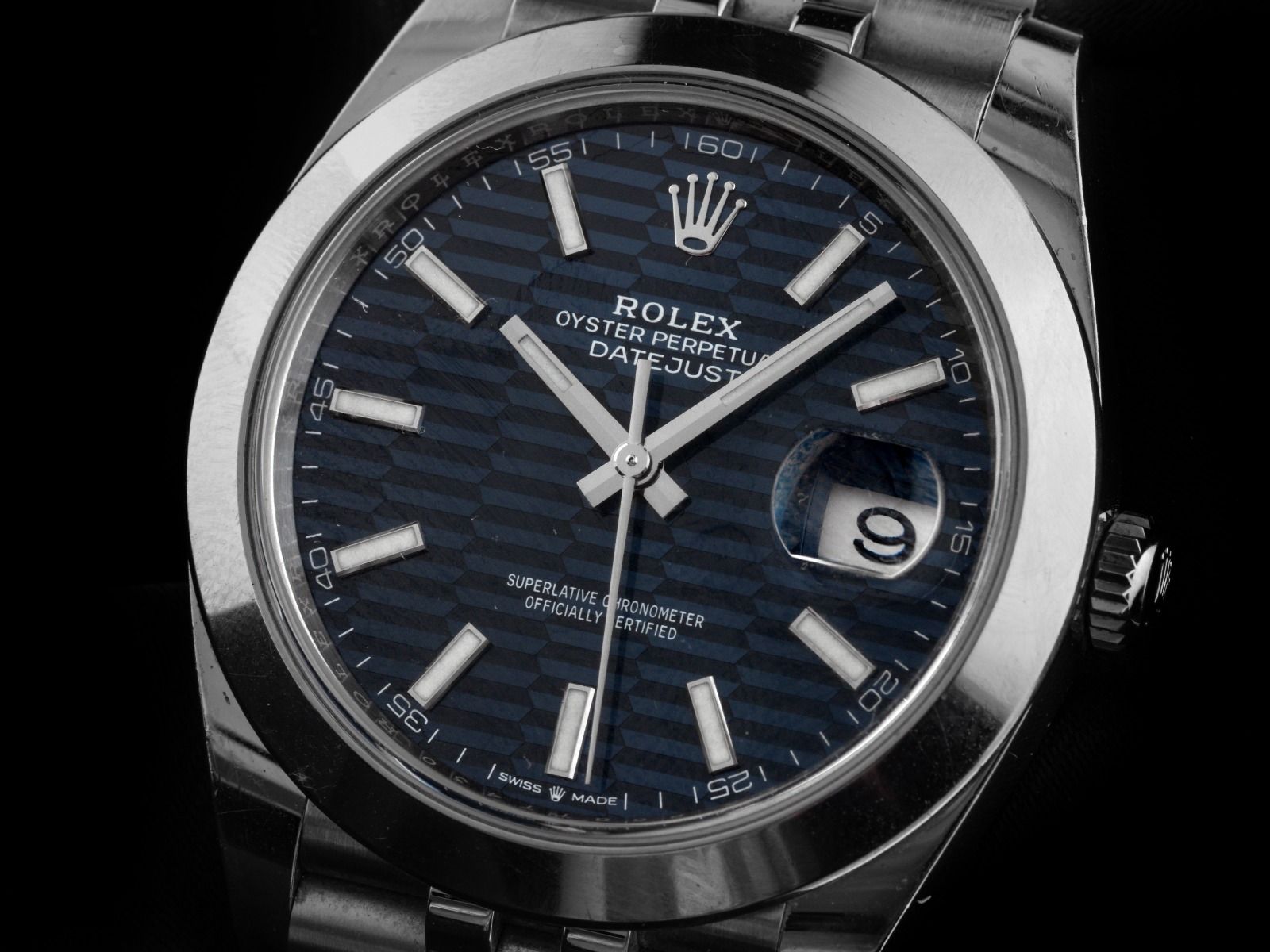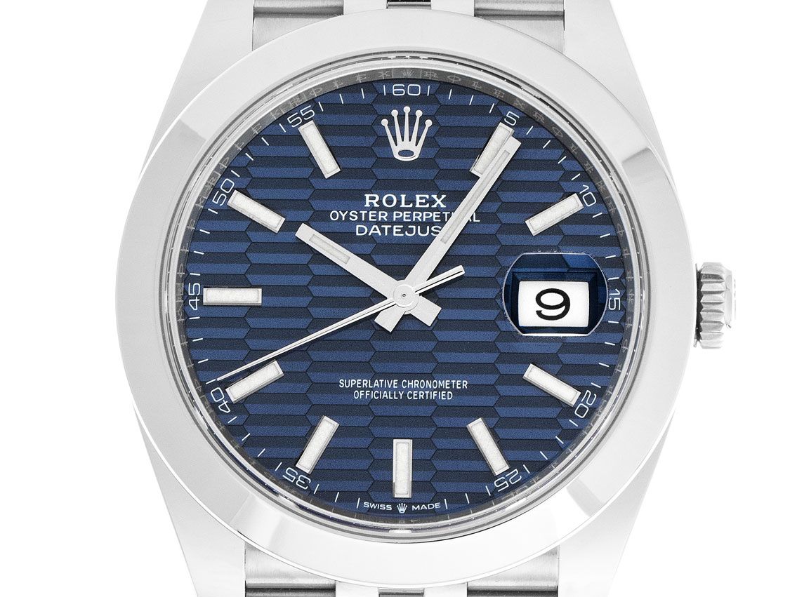 Rolex Datejust Stahl Automatik Armband Jubilé Gehäuse Edelstahl poliert und satiniert, Gehäusedurchmesser ohne Krone 41mm, Gehäusehöhe 11,3mm. Lünette Edelstahl glatt und poliert. Armband Jubilé Edelstahl poliert und satiniert, Rolex Faltschließe Edelstahl mit Hersteller-Logo. Zifferblatt Blue Wave, dieses Zifferblatt wird nicht mehr hergestellt, mit aufgesetzten weißgoldenen Leuchtindexen und weißgoldenen Leuchtzeigern. Uhrwerk Automatik, Chronometer mit Zeugnis, Rolex Manufakturkaliber 3235 mit 31 Edelsteinen. Anzeige von Stunde, Minute und Sekunde über Zeiger aus der Mitte mit Sekundenstopp zur sekundengenauen Einstellung der Uhrzeit, Datumsanzeige mit Schnellverstellung unter Glaslupe bei 3 Uhr. Saphirglas kratzfest. Krone verschraubbar mit Hersteller-Logo. Boden Edelstahl verschraubt. Gewicht der Uhr inklusive Armband 126g, Länge des Armbandes inklusive Gehäuse 170mm, siehe Bild Nummer 8. Referenznummer 126300, Gehäusenummer: 858TTXXX, ID: P2950210000426HW-15200, Artikelnummer: 10000085762. Original Rolex Box mit Umkarton und Garantie Papiere vom 13. November 2023, neue Rolex Garantie Karte ohne Ländercode sowie Beschreibung, Ledermäppchen, Rolex Chronometer-Siegel und Watchregister Auszug von April 2026, The Watch Register Zertifikat / ohne Eintrag (Internationale Datenbank für verlorene oder gestohlene Uhren), Full Set. Superschnäppchen, Kapitalanlage mit Wertsteigerungspotential, sehr seltenes Sammlerstück, aus erster Hand, fast nicht getragen, ausverkauftes Sammlerstück. Sehr guter Zustand. Lieferzeit sofort. Inklusive certified pre owned Siegel / Uhrenpass mit einem Farbbild, der genauen Beschreibung sowie dem Wiederbeschaffungswert der Uhr über 15200,-€ und 1000 Tage Garantie ab Kaufdatum.