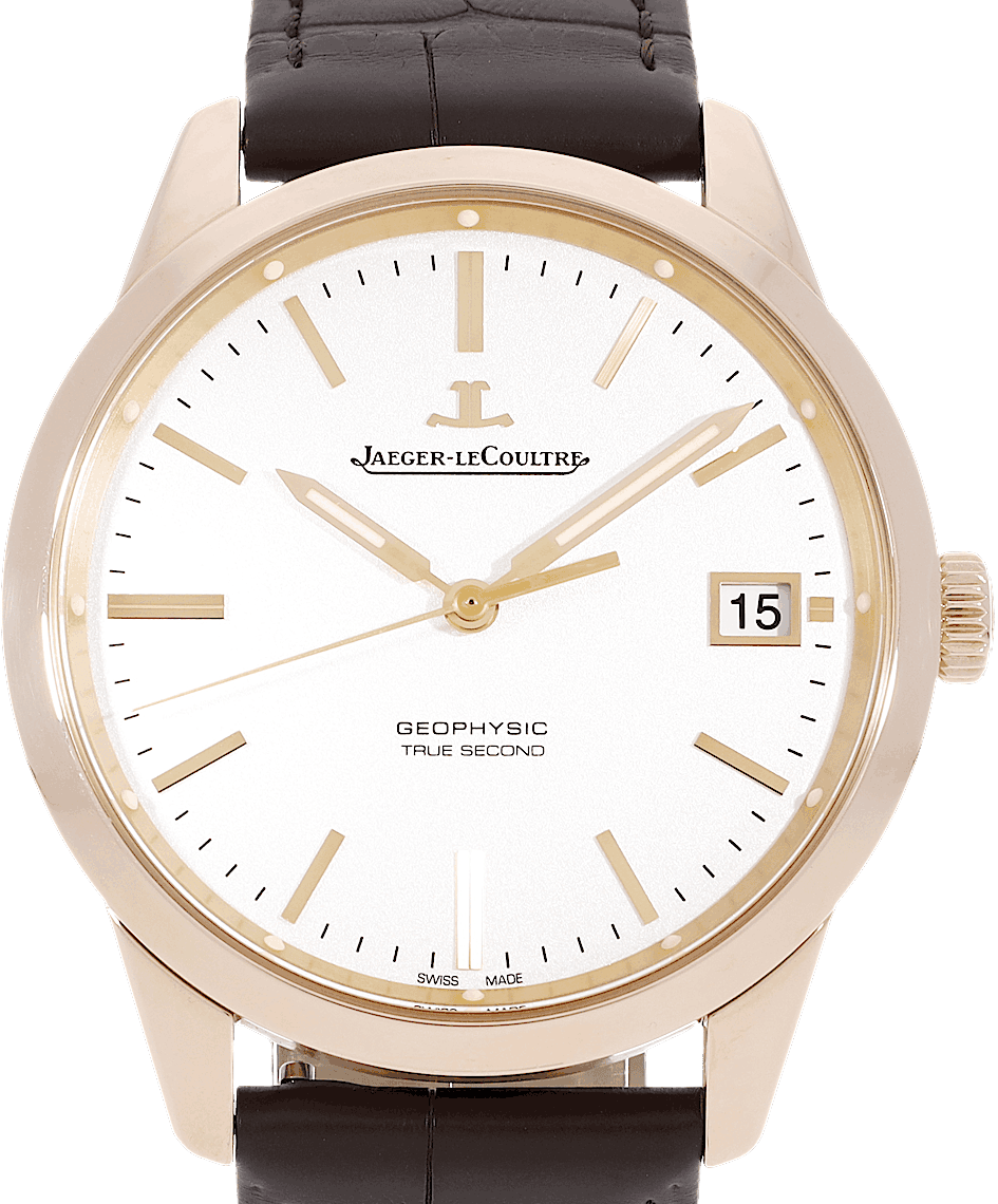 Jaeger-LeCoultre Geophysic, Reference: Q8012520, Gender: Male, Size: 40mm, Dial color: White, Strap material: Alligator Leather, Movement: Automatic, Year: 2020, Condition: Previously worn with some signs of usage. The movement is flawless and the case has been cleaned. watch tested to ensure full functionality. An inspection by our certified watchmakers guarantees its authenticity., Documents: Original papers, CHRONEXT Certificate