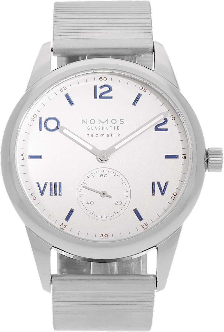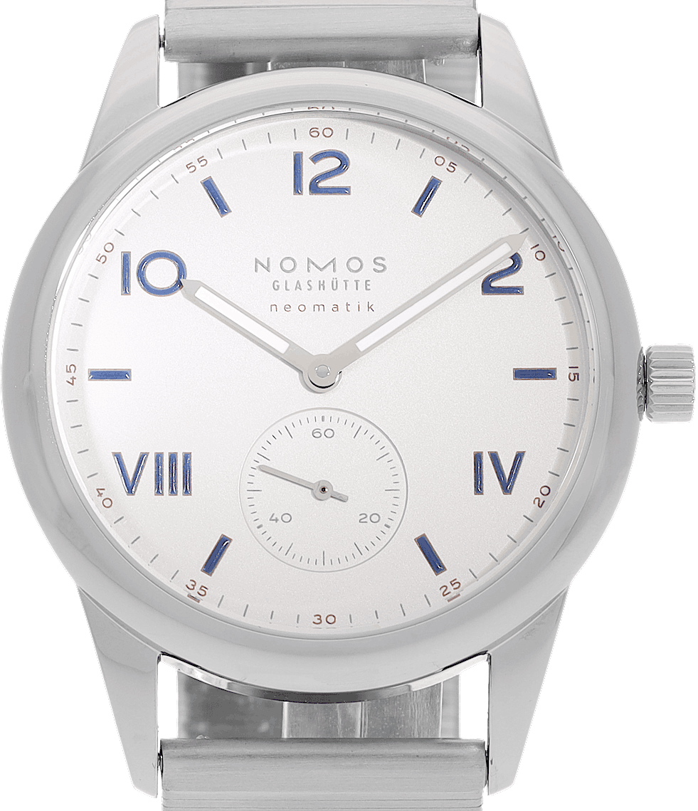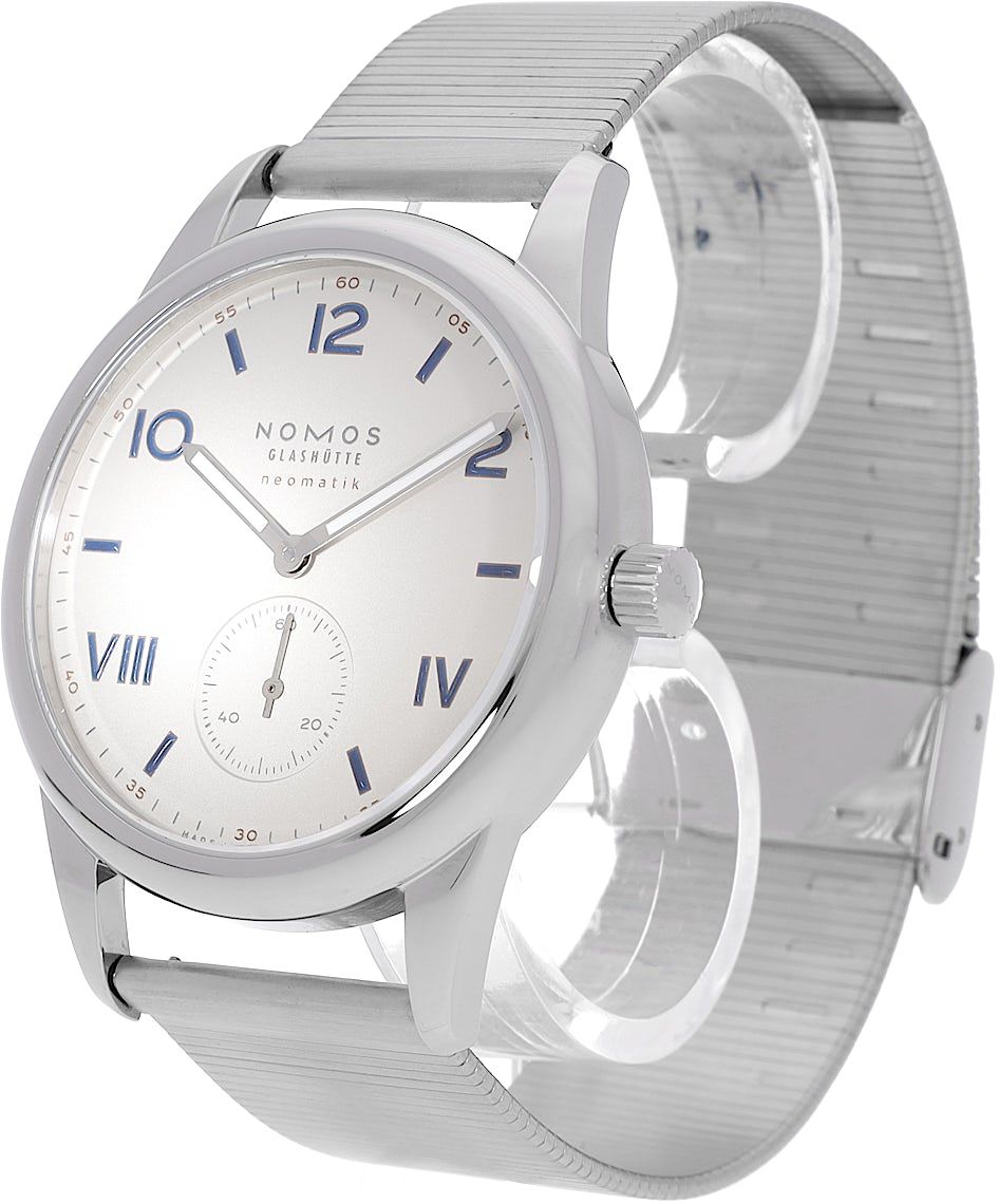 Nomos Club Sport Neomatik 39 Amber, Reference: 766, Gender: Male, Size: 40mm, Dial color: Silver, Strap material: Stainless Steel, Movement: Automatic, Year: 2021, Condition: Previously worn, minor to no signs of usage. The movement is flawless and the case has been cleaned. watch tested ensure full functionality. An inspection by our certified watchmakers guarantees its authenticity., Documents: Original papers, CHRONEXT Certificate