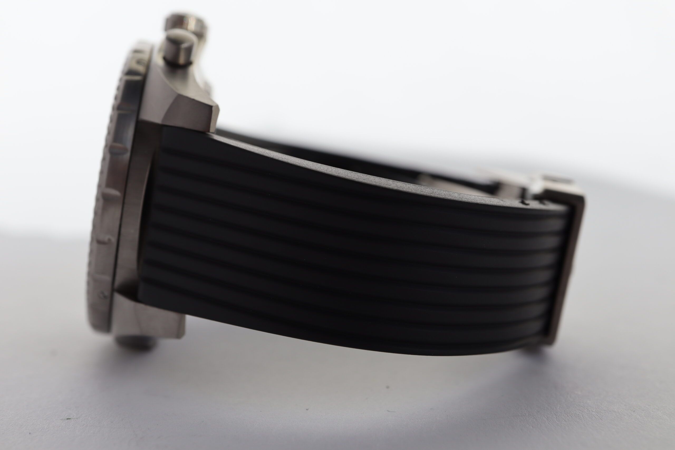 De Breitling for Bentley Supersports Lightbody ref. E27365 combineert twee luxe merken in één spectaculair horloge - Breitling en Bentley. De "Lightbody" ref. E27365 is gemaakt van lichtgewicht Titanium en wordt gedragen op een soepele rubberen armband, waardoor het lichter om de pols zit dan een roestvrijstalen horloge van dezelfde grootte. Het horloge heeft ook een robuuste kast van 49 mm en maakt een gedurfde indruk om de pols. Andere iconische kenmerken zijn de klassieke chronograafdrukkers aan de zijkant, coördinerende registers op de wijzerplaat en Breitling's iconische bezel met textuur.