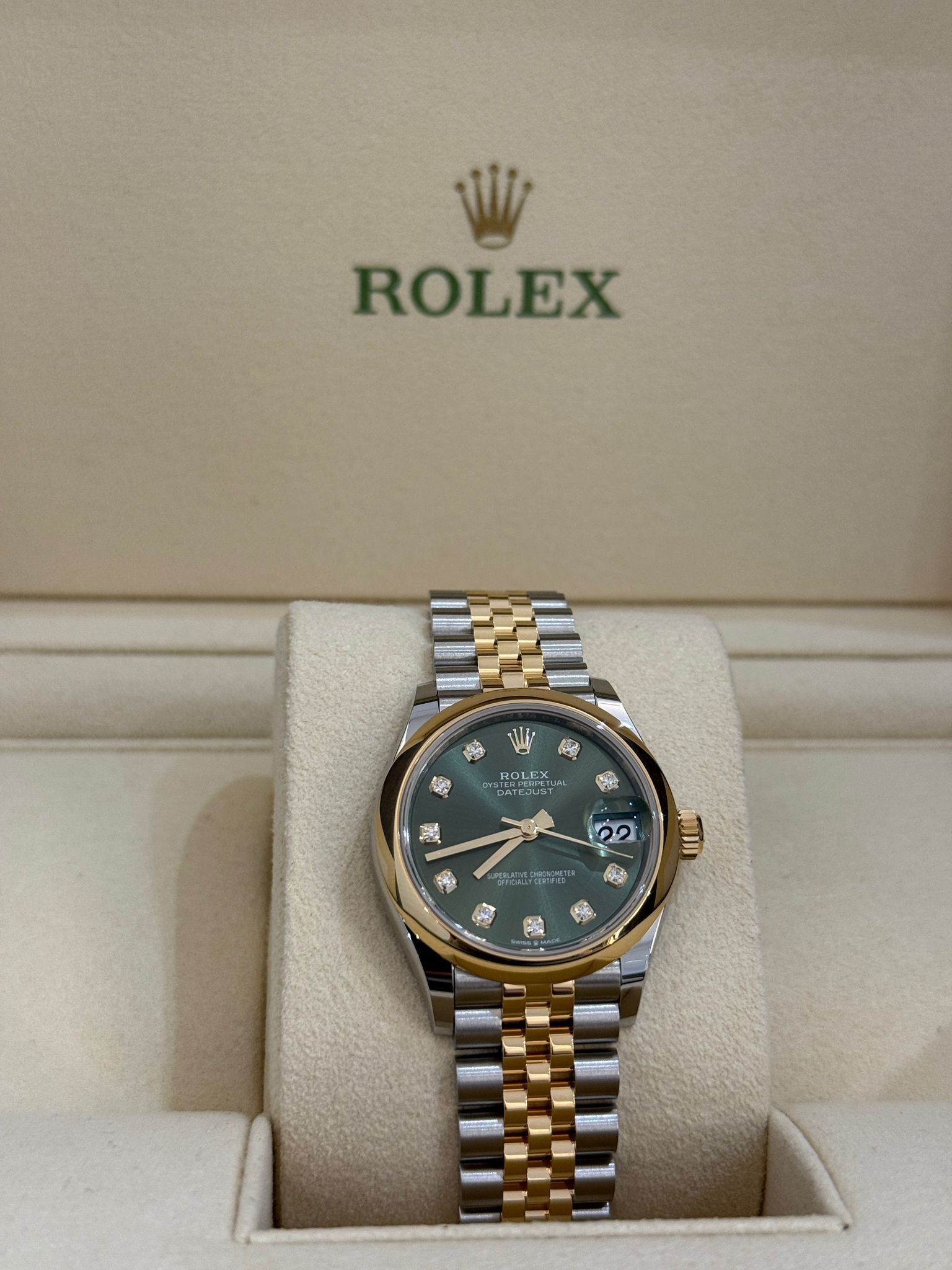 Rolex Datejust 31 Rolex Datejust 31 M278243-0030 - Olive green set with diamonds dial, domed bezel, jubilee bracelet