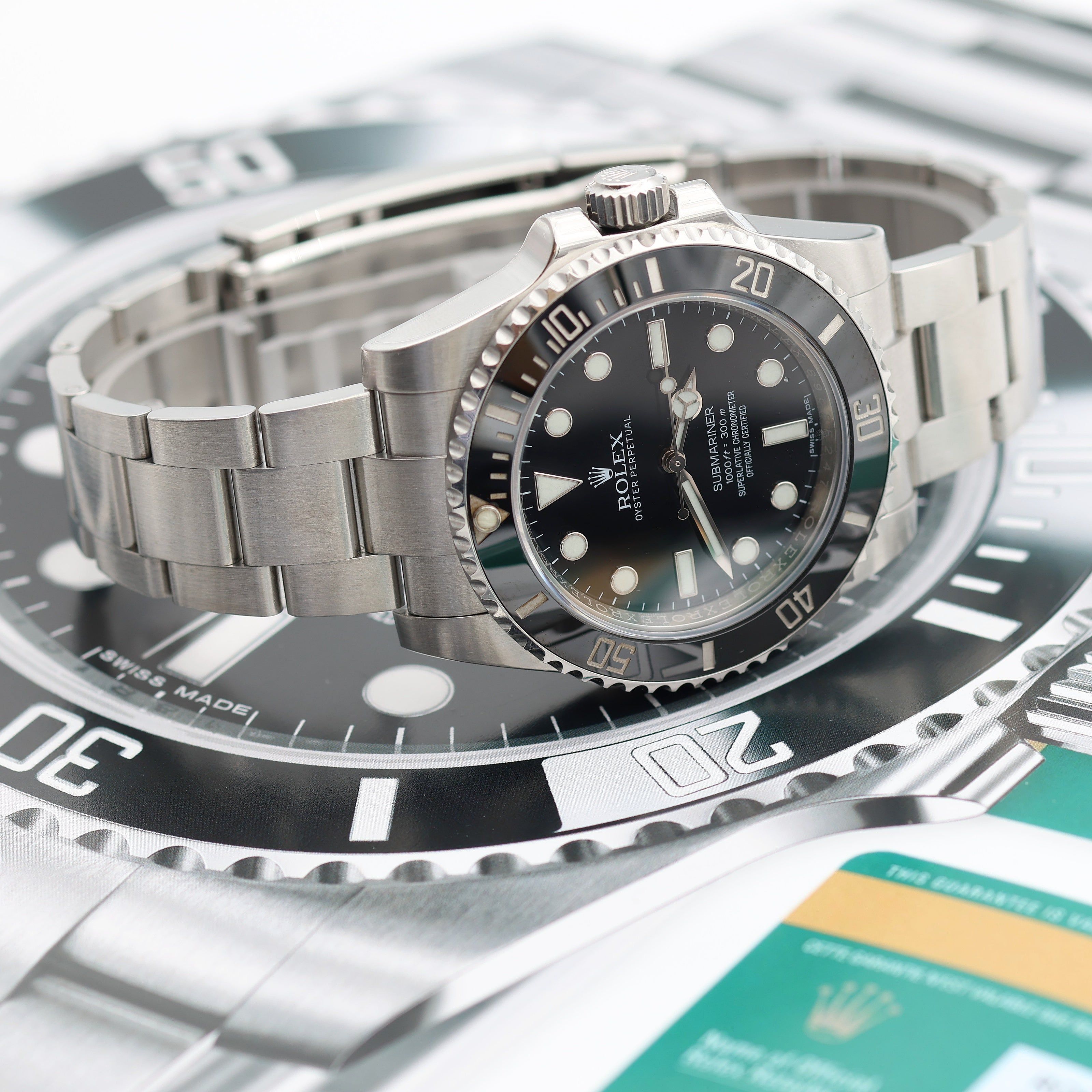 Te koop bij Debonar Watches: tweedehands Rolex Submariner 114060 No Date, met originele papieren en doos.Het perfecte horloge voor wie de voorkeur geeft aan het originele Submariner ontwerp vanwege de strakke, symmetrische en datumloze wijzerplaat. De 904L roestvrijstalen kast is 40 mm in diameter, 48 mm van lug tot lug over de pols (zonder de vaste eindschakels van de armband) en 12,5 mm dik. De kast is aan de voorkant overwegend satijnachtig afgewerkt en de zijkanten zijn spiegelgepolijst. De Rolex Submariner 114060 introduceerde een uni-directionele Cerachrom bezel in de Submariner. MERK ROLEX MODEL SUBMARINER REFERENTIE 114060 KASTMATERIAAL STAAL UURWERK AUTOMATISCH AFMETING 40 MM WIJZERPLAAT ZWART BEZEL STAAL KRISTAL SAFFIER ARMBAND TYPE ARMBAND OYSTER 18 CM BANDMATERIAAL STAAL ORIGINELE DOOS JA ORIGINELE PAPIEREN JA JAAR 2010-15 CONDITIE UITSTEKEND
