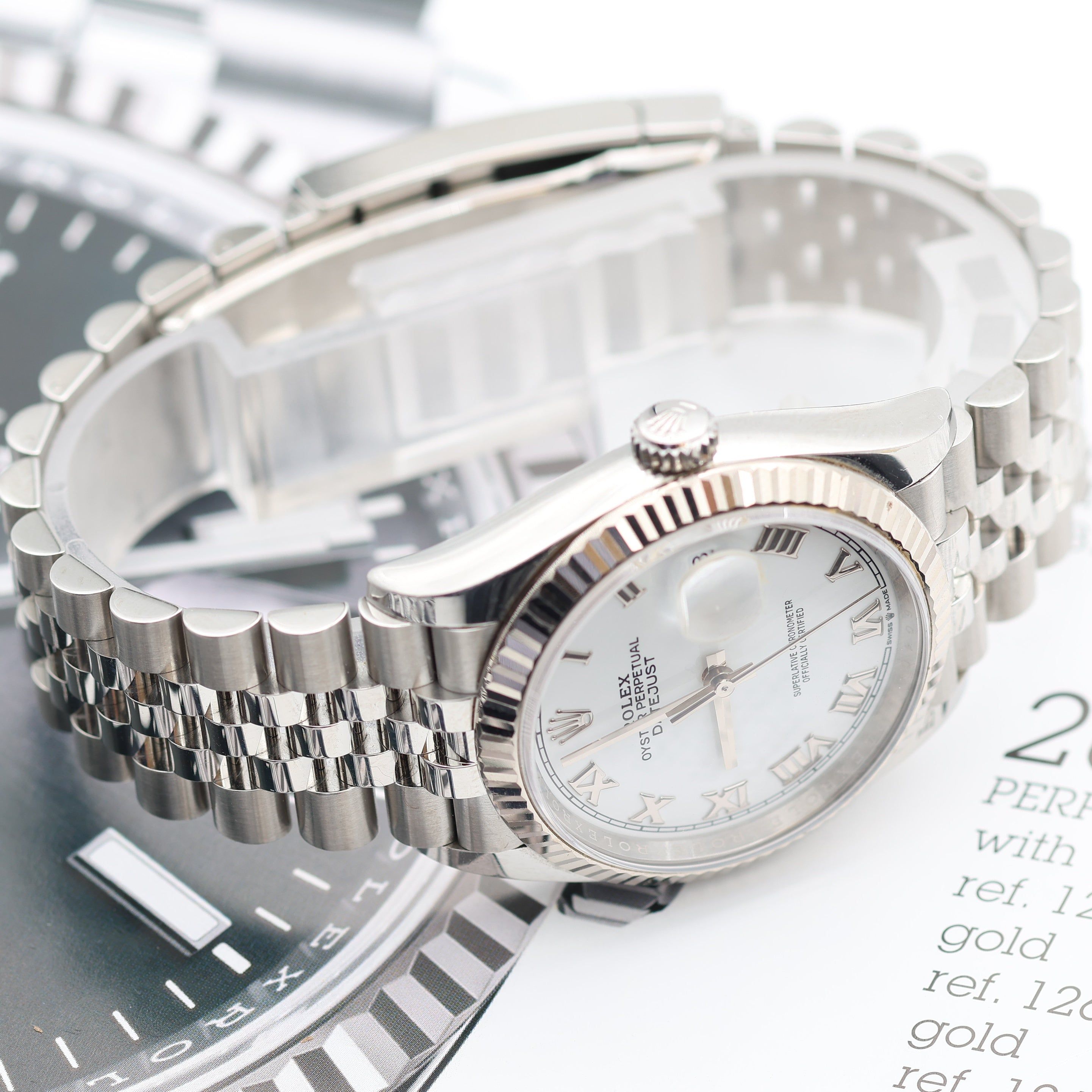 Rolex Datejust ref. 126234 White Roman Dial Jubilee bracelet - Full Set