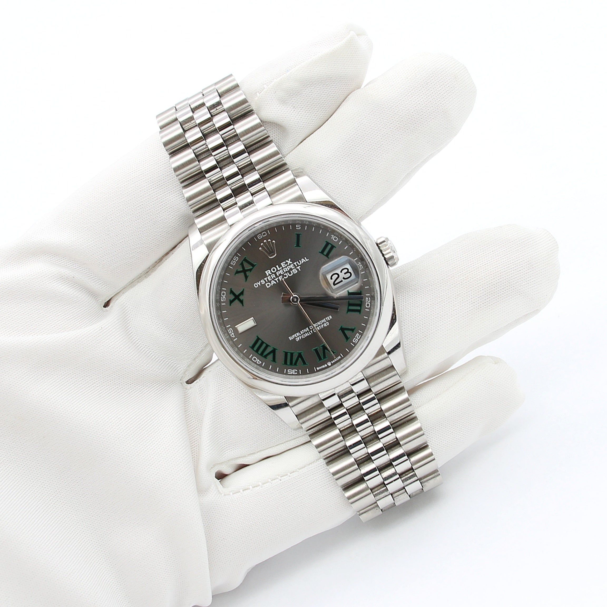 For sale: pre-owned Rolex Datejust 126200, with original papers.This Oyster Perpetual Datejust 36 in Oystersteel features a rare Wimbledon grey dial and a Jubilee bracelet.If you’re in the market for a watch that combines history, versatility, style and engineering prowess, look no further than the Rolex Datejust 126200. Aesthetically, the Datejust is one of the most recognized and recognizable of watches. This Datejust model offers a sophisticated and tasteful link to the past, without losing its appeal. This model has been a mainstay in the Rolex catalogue since its inception back in 1945, and subtle adjustments have been made over the years to make it an even more attractive proposition than ever. BRAND ROLEX MODEL DATEJUST REFERENCE 126200 CASE MATERIAL STEEL MOVEMENT AUTOMATIC DIMENSION 36 MM DIAL GREY BEZEL STEEL CRYSTAL SAPPHIRE BRACELET TYPE JUBILEE BRACELET MATERIAL STEEL ORIGINAL BOX YES ORIGINAL PAPERS YES YEAR 2021 CONDITION EXCELLENT