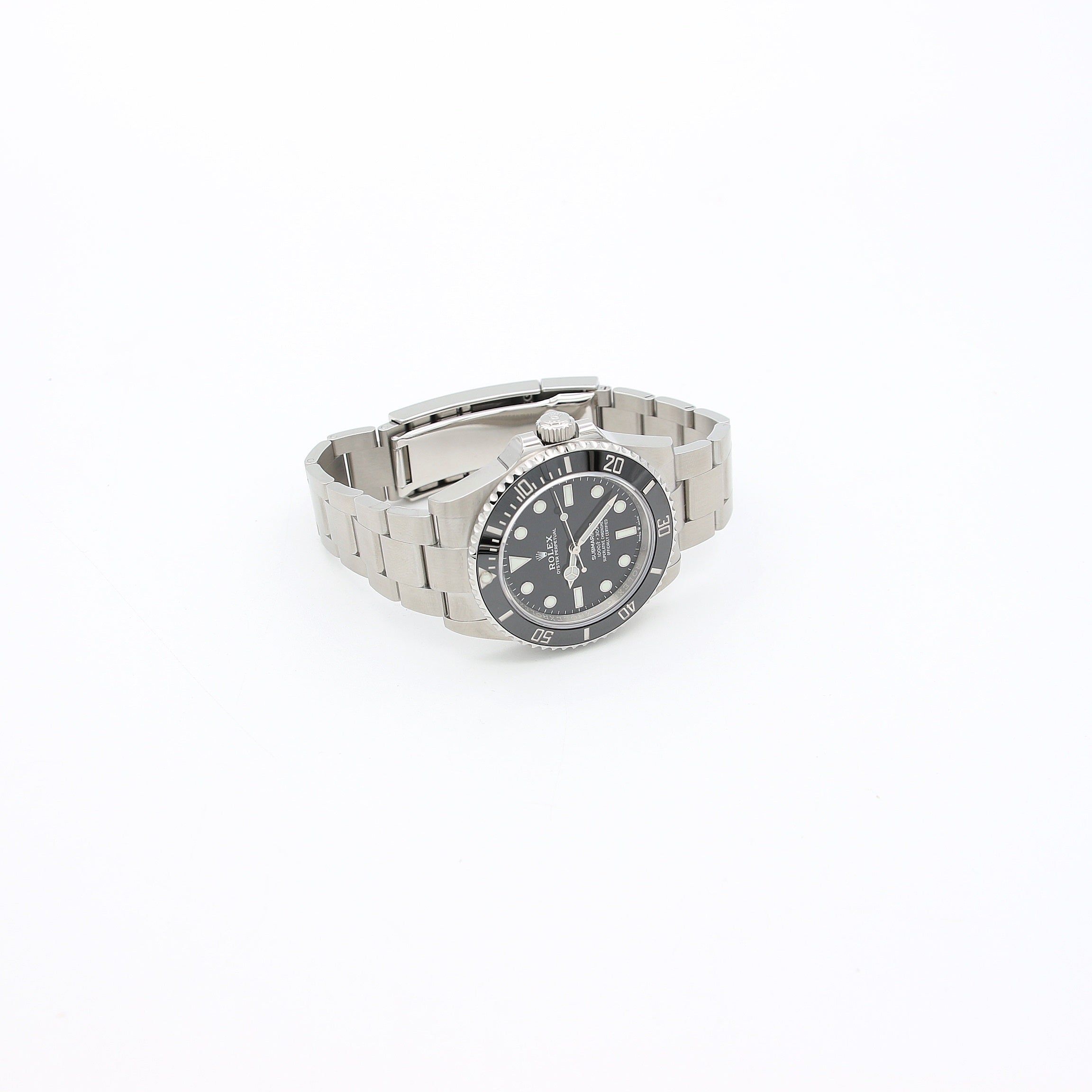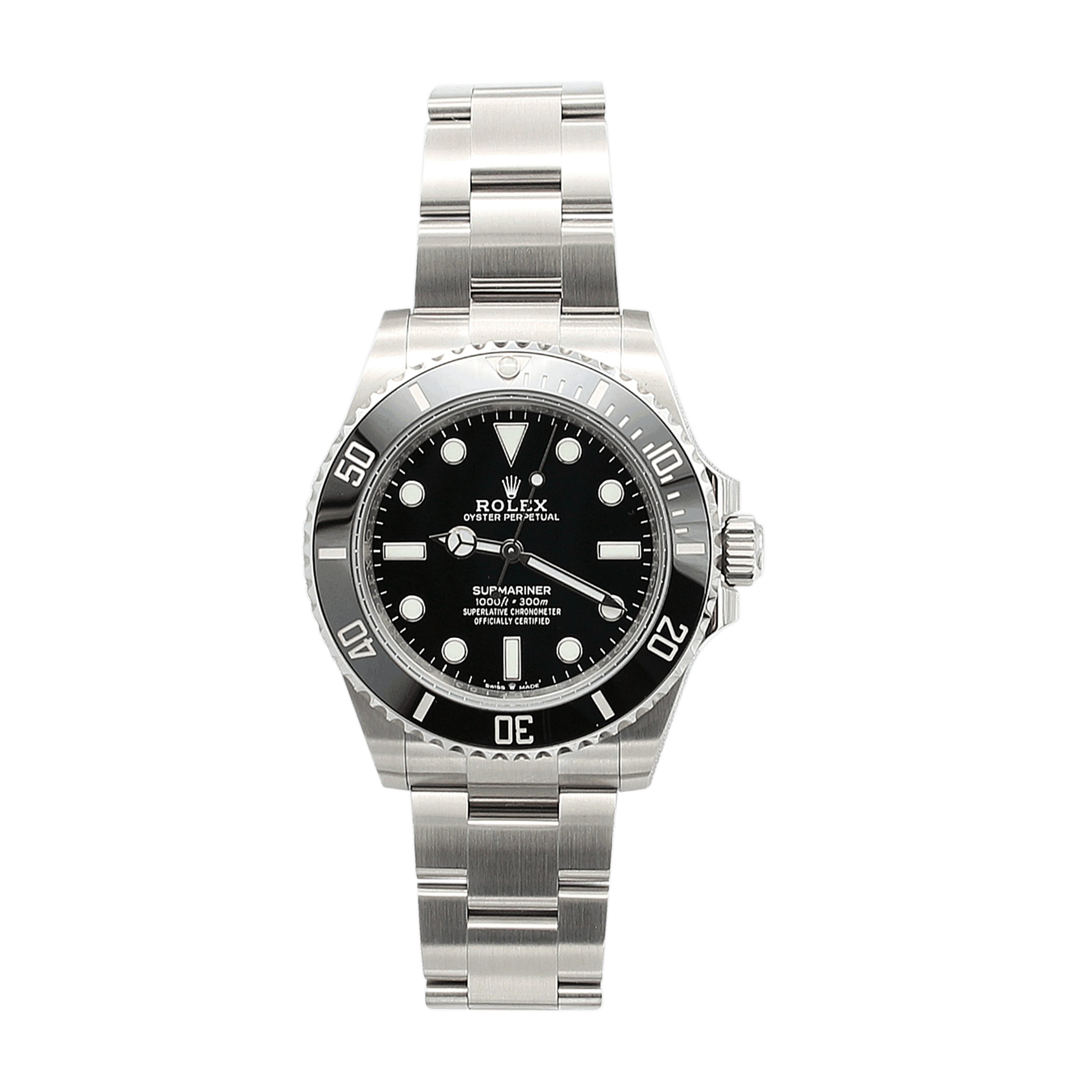 For sale at Debonar Watches: pre-owned Rolex Submariner No Date 124060, full set.This Submariner is when Rolex did a step from 40mm to 41mm.The lugs have been slimmed down compared to the 114060 as a result of the slight increase in case size. Other than the size, the case looks like it always has. We have the same 904L steel holding it all together, the solid caseback, the crown guards, the signed crown, and the combination of both brushed and polished surfaces.The Rolex Submariner was first released in 1953. It was conceived as a true tool for divers and has a long history as a military-issued watch (those versions being called MilSubs). It wasn't an overnight sensation.The Submariner took some time to become the crossover hit it is today, but its "power" kept growing.A reason for this is how relatively unchanged the no-date Sub has been since its inception. It's maintained its core design ethos: Black bezel, black dial, large markers, and the iconic oyster bracelet. Any evolution has been subtle. In August of 2020, Rolex made simultaneously its biggest and most unnoticeable changes to the Sub by introducing the Reference 124060 – a 41mm watch with an improved case profile, slimmer lugs, slightly different bracelet construction, and a new in-house movement. BRAND ROLEX MODEL SUBMARINER NO DATE REFERENCE 124060 CASE MATERIAL STEEL MOVEMENT AUTOMATIC DIMENSION 41x40 MM DIAL BLACK BEZEL STEEL CRYSTAL SAPPHIRE BRACELET TYPE OYSTER BRACELET MATERIAL STEEL BRACELET LENGHT 18 CM ORIGINAL BOX YES ORIGINAL PAPERS YES YEAR 2020-22 CONDITION EXCELLENT