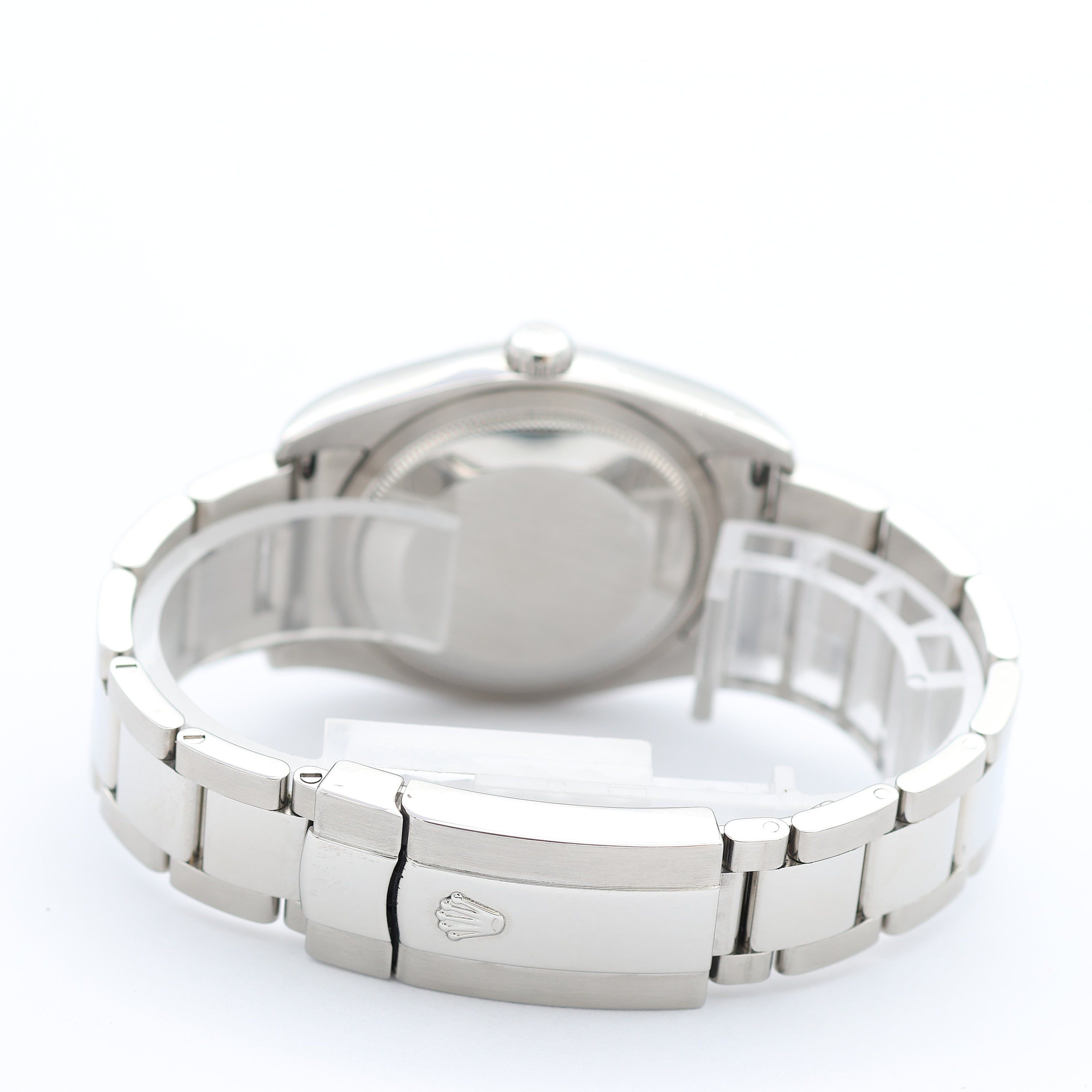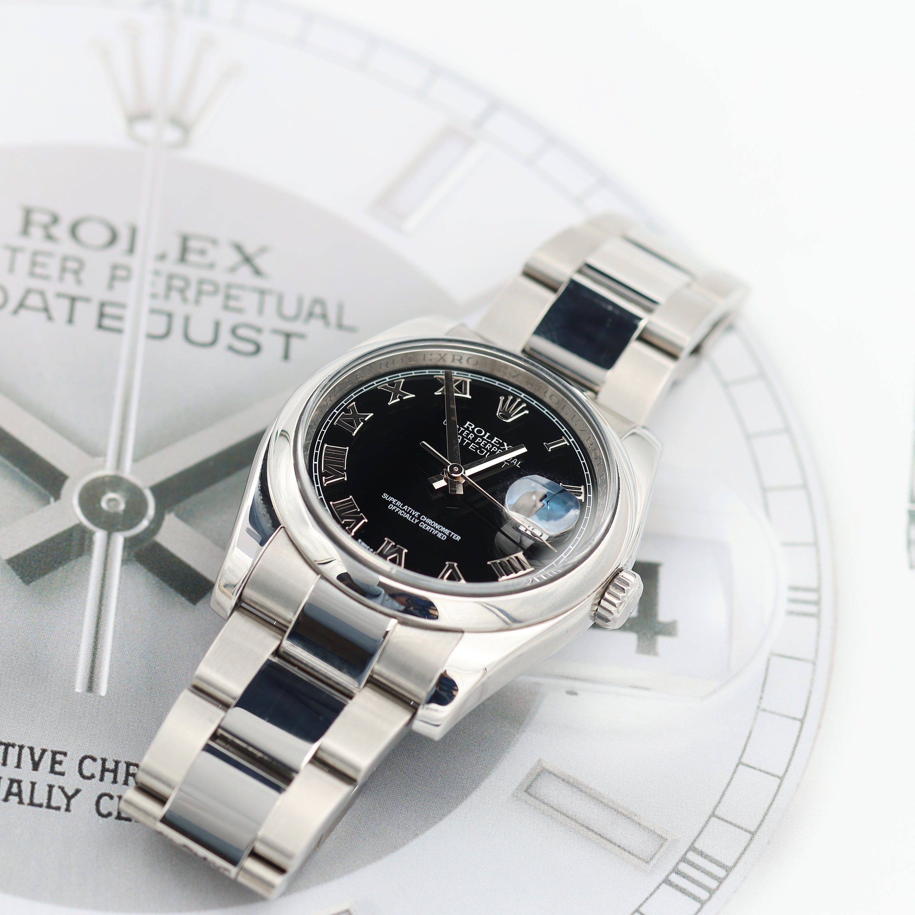 For sale at Debonar Watches: pre-owned Rolex Datejust 116200, in excellent conditions, with a deep black roman dial and with Warranty Rolex and box.he Rolex Datejust 116200, crafted from premium 904L stainless steel, is built to last and retain value over time.This Rolex 116200 is made entirely of steel, including bracelet and bezel.One of the biggest changes Rolex has made to their production base in recent years is their switch from 316L stainless steel to 904L. The ref. 1162XX series were the first Datejusts cast in the new metal.The reference 116200 is a 36mm watch. For many, 36mm is a relatively small watch (at least by modern standards), but the Datejust has always had an uncanny knack for shrugging off perceptions that apply to virtually all its competitors. A bit of its story:Rolex DateJust (inspired by Rolex Bubbleback) was first introduced in 1945 to celebrate the 40th anniversary of Rolex. The Datejust is one of the earliest Rolex models that survives till today.From its debut way back in 1945, a revolutionary launch that put the brand firmly on the map, it has remained at the top of the company’s bestseller list for three quarters of a century.Rolex’s ref. 162XX series of Datejust watches first emerged in 1988, a replacement for the relatively short-lived ref. 160XX range. The Rolex Datejust reference 116200 was announced at Baselworld 2004. BRAND ROLEX MODEL DATEJUST REFERENCE 116200 CASE MATERIAL STEEL MOVEMENT AUTOMATIC DIMENSION 36 MM DIAL BLACK ROMAN BEZEL STEEL CRYSTAL SAPPHIRE BRACELET TYPE OYSTER BRACELET MATERIAL STEEL BRACELET LENGHT 18 CM ORIGINAL BOX YES ORIGINAL PAPERS YES YEAR APPROX. '00s-'10s CONDITION EXCELLENT