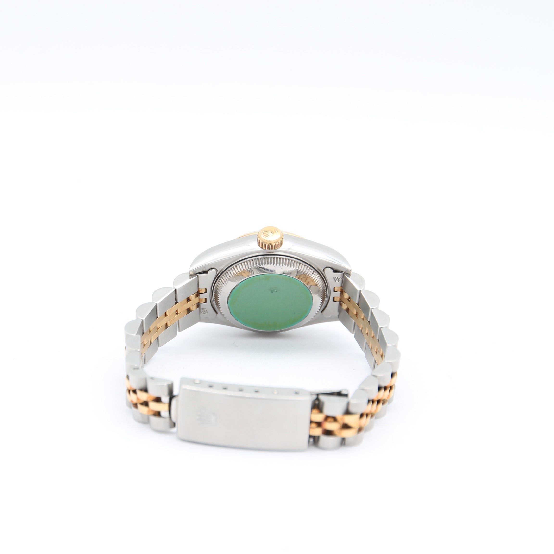 For sale at Debonar Watches: pre-owned Rolex Datejust Lady ref. 69173 with an original Rolex champagne dial with small roman numbers, with papers and box. Feminine elegance at superlative, chronometer certified with a flawless and iconic accurate date display window.It presents a champagne dial: a splendid variation, ideal for elegant writsts.It is one of the finest women’s watches, since 1957. The small 26mm dimensions make this model a manufacturing jeweler Rolex Jubilee Bracelet in agreement with 18k yellow gold and steel. The model is a compliment of sophisticated elegance, signed Rolex.Contact us in case of any doubts/inquiry. BRAND ROLEX MODEL DATEJUST LADY REFERENCE 69173 CASE MATERIAL STEEL/GOLD MOVEMENT AUTOMATIC DIMENSION 26 MM DIAL CHAMPAGNE SMALL ROMAN BEZEL GOLD CRYSTAL SAPPHIRE BRACELET TYPE JUBILEE BRACELET MATERIAL STEEL/GOLD BRACELET LENGHT 16 CM ORIGINAL BOX YES ORIGINAL PAPERS YES YEAR APPROX. THE '90s CONDITION VERY GOOD