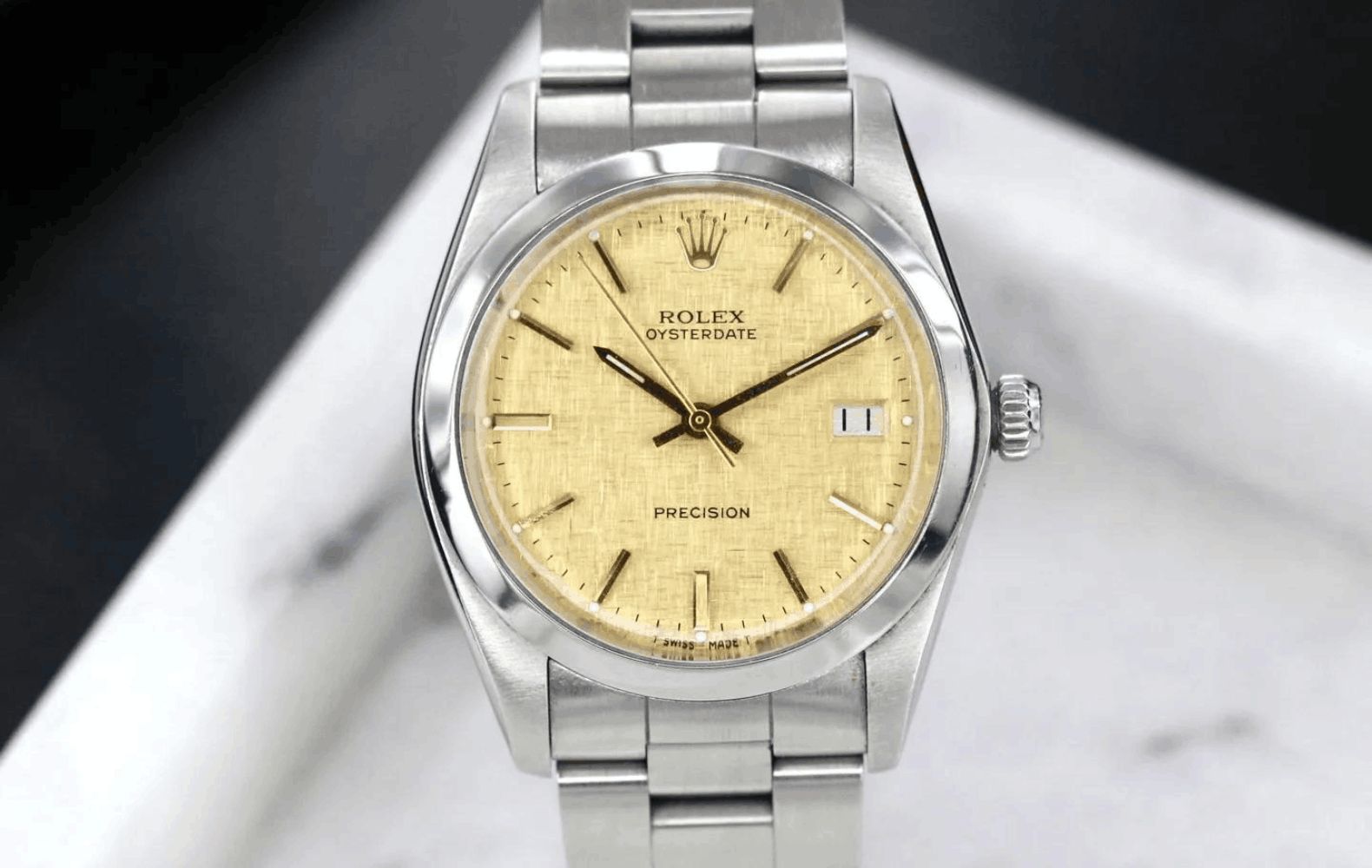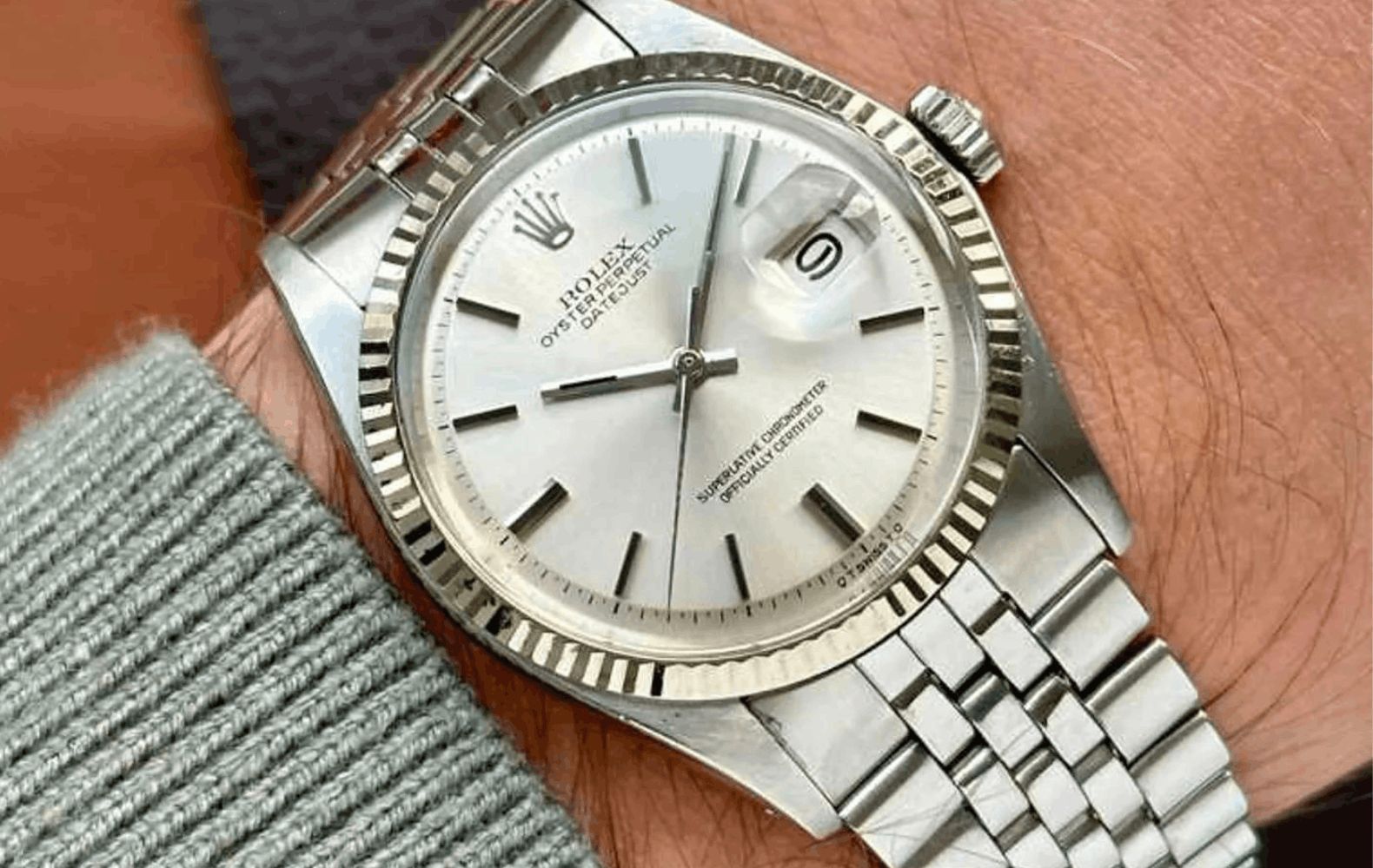 É sabido que, no mercado de usados, os relógios femininos são menos procurados. Por isso, o Rolex mais acessível costuma ser um modelo de senhora. Falamos do Rolex Oyster Perpetual Lady Date. O OP Lady Date é um dos primeiros relógios de pulso automáticos produzidos pela Rolex, daí o nome Oyster Perpetual. Apresenta-se numa caixa de 26 mm, com uma luneta lisa ou canelada, em aço ou ouro/aço (bicolor), e pode ser encontrado com bracelete Oyster ou Jubilee. O preço começa nos 2.500 euros, dependendo do estado de conservação, da bracelete e do material. A versão Lady-Date com bracelete Jubilee e luneta canelada é, provavelmente, a mais procurada.