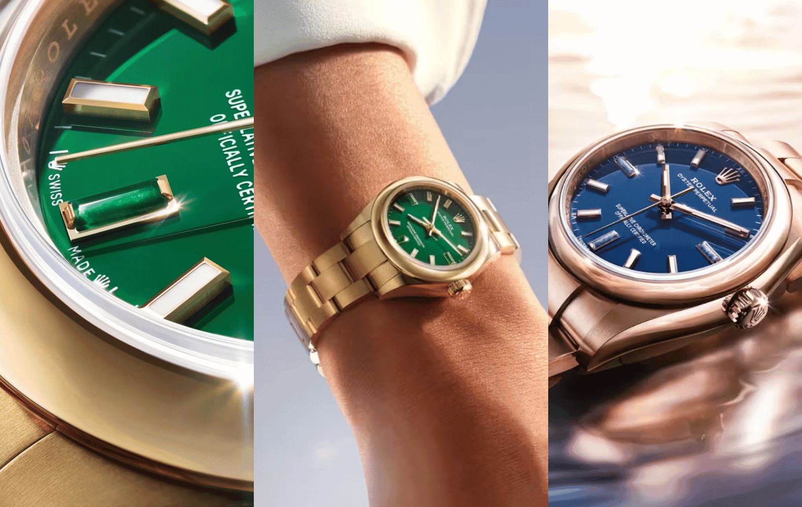 Um mostrador cinza, caixa de aço e bezel liso em ouro: voltando às raízes com este 100º aniversário do Oyster Perpetual 41. Está bonito? Para ser sincero, parece um pouco estranho. Eu entendo totalmente as combinações de cores, mas dá a impressão de ser um pouco ‘plano’ com esses materiais contrastantes. Ele apresenta a famosa caixa da versão atualizada do 41 OP, mas agora com detalhes em Rolesor, como os marcadores de horas, a coroa e o bezel. Com a referência 134303, este modelo custará €9.400 na boutique, mas espere que a expectativa seja real no mercado cinza no início.