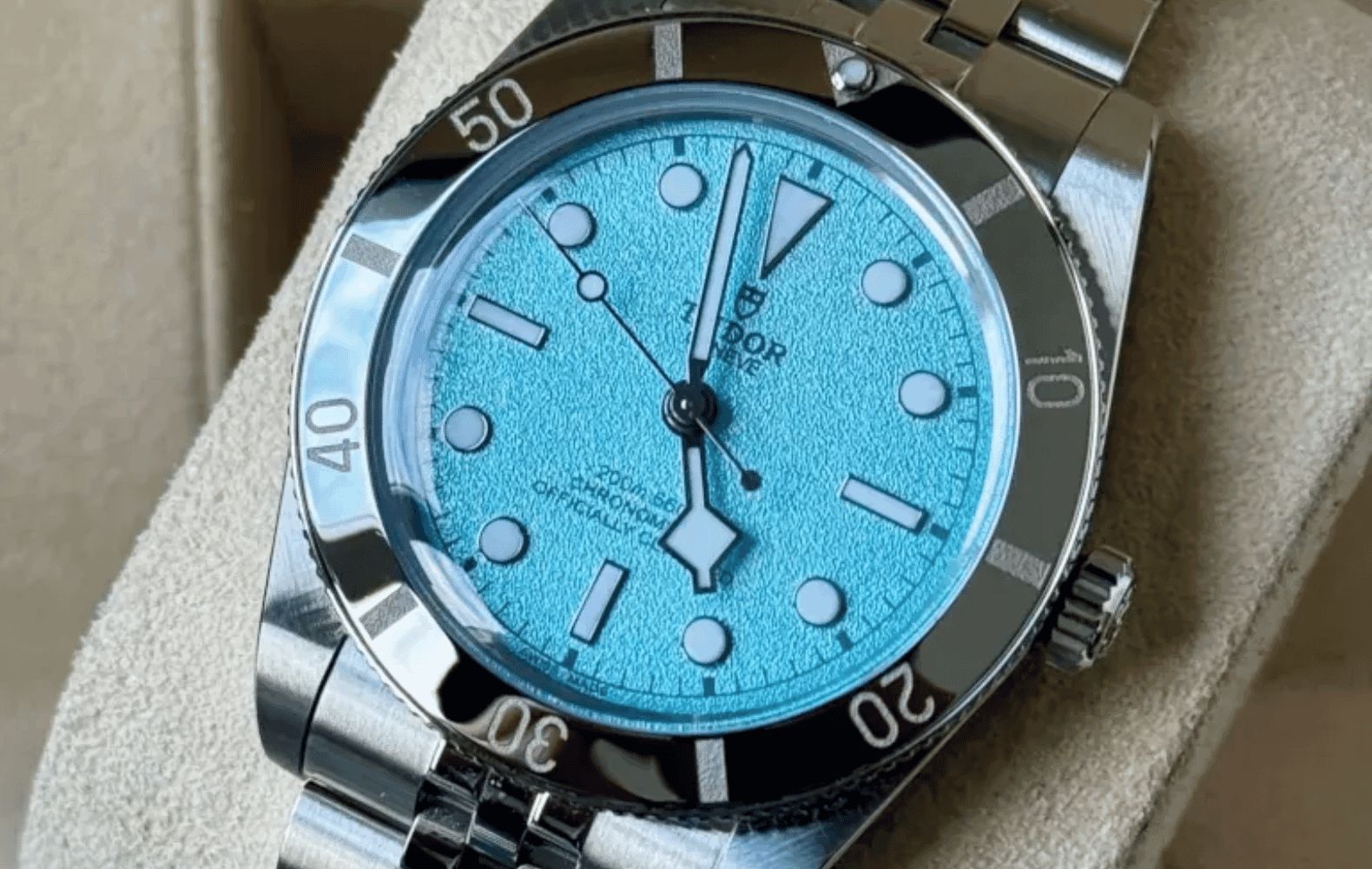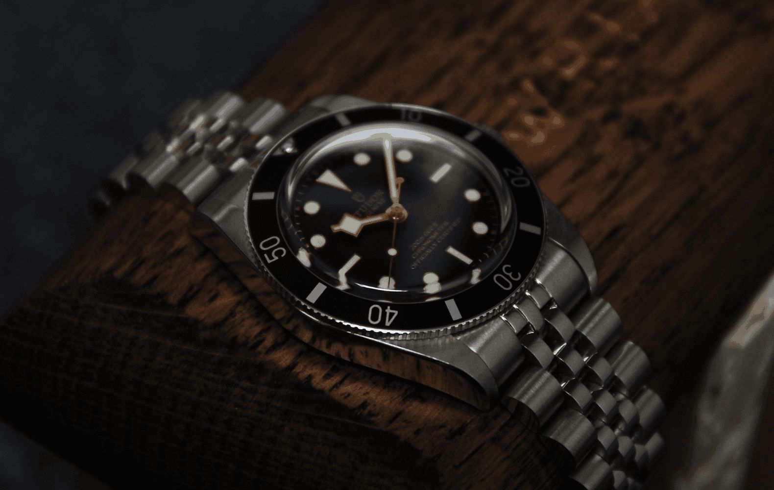 O Black Bay 54 é o menor da linha moderna, com 37 mm, uma homenagem ao primeiro mergulhador da Tudor de 1954, o Oyster Prince Submariner. Seu bezel limpo elimina os marcadores de minutos entre 12 e 3 horas, conferindo ao mostrador uma borda nítida e descomplicada. Troque os segundos em forma de floco de neve do 58 por um ponteiro em forma de pirulito e você terá um design que sussurra vintage em vez de gritar. O mostrador com efeito sol dá um brilho sutil sem exagerar no brilho.